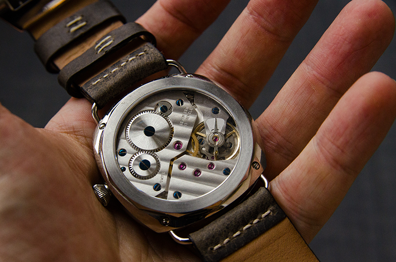 Размер 47мм, двухстрелочник(!), потрясающая полировка корпуса, Механизм с ручным заводом unitas 6497, Сендвич циферблат с очень щедрым количеством люминофора, водозащита по замерам производителя больше 10 бар, Купольный сапфир с антибликом сверху и плоский снизу, стрелки из ЗОЛОТА 585 пробы.