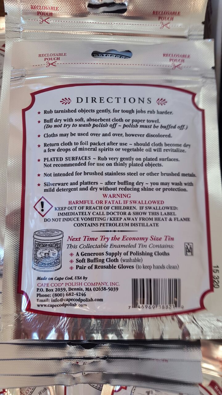 C помощью салфеток Cape Cod Вы сможете самостоятельно придать блеск и убрать мелкие царапины и потертости придав первоначальное состояние вашим часам и браслету, ювелирным украшениям, ножам, а так же любым изделиям из металлов!