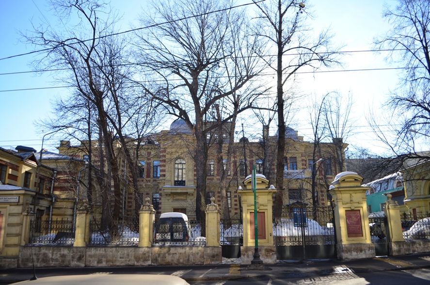 А вот следующий дом вообще грандиозен, а еще имеет весьма интересную легенду. Он принадлежал чаеторговцу и нефтедобытчику Стахееву. Обошелся он ему в миллион рублей (полагаю, что по нынешнему курсу это под миллиард долларов). По крайней мере, мне попадалось, что приличный особняк стоил от 50 тысяч. А уже суперовское жилье типа особняков Морозовых редко превышали 100 – 150 тысяч. Расположенный за домом сад им. Баумана был когда-то приусадебным участком, правда, там минимум три особняка – два с Новой и один со Старой Басманной. Но и четвертушка садика впечатляет. Сейчас в доме дом творчества для детей железнодорожников . Эту функцию он приобрел в первые послереволюционные годы. А честь такая ему выпала, скорее всего, потому, что Железный Феликс руководил тогда не только расстрельными командами, но и был Министром путей сообщения. Вот с этим связан и главная легенда дома. Стахеев в момент революции был за границей. Поэтому судьба большинства контриков его не коснулась. Однако в доме остались сокровища - золото и бриллианты, весьма хорошо припрятанные.