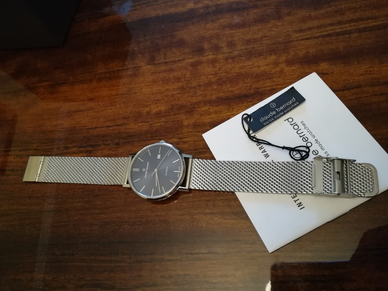 Claude Bernard 80102 3M BUIN - мужские/унисекс механические наручные часы. Корпус среднего размера (40,5 мм) и выполнен из нержавеющей стали L316. Модель имеет устойчивое к царапинам сапфировое стекло, металлический миланский оригинальный браслет, серый в оттенки синего циферблат. Заднее стекло обзора механизма. Калибр механизма: Selita S200. автоподзавод, запас хода 48 часов. Водозащита 3 АТМ. Дополнительные функции и особенности: отображение числа. Полная заводская комплектация: оригинальные часы, фирменная коробка, инструкция, сервисная книжка. Производство Швейцария - завод EDOX. Swiss made. Состояние часов превосходное, нигде ничего. Часы находятся в Москве. Интересует только продажа. цена на стоке в РФ порядка 535EUR, причем с меш-браслетом данную модель в РФ в продаже я не нашел.