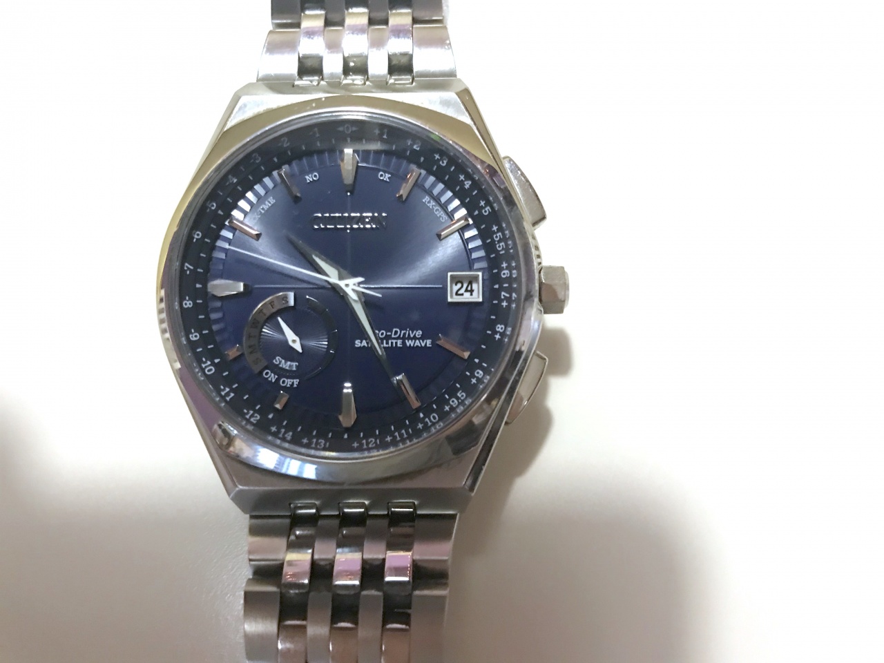 При помощи GPS устанавливается время, часовой пояс и дата, также есть быстрая установка только времени. Если смена часового пояса происходит там, где нет приёма GPS, можно менять часовой пояс вручную, при этом стрелки автоматически передвигаются. Очень удобно для путешествий через несколько часовых поясов. Приём сигнала GPS из комнаты при сильной облачности занимает около 30 секунд, на улице при ясной погоде – около 5 секунд, что подтверждает репутацию Citizen Satellite Wave как часов с самым быстрым и надёжным приёмом GPS. При желании могу выслать видео, иллюстрирующее этот процесс.