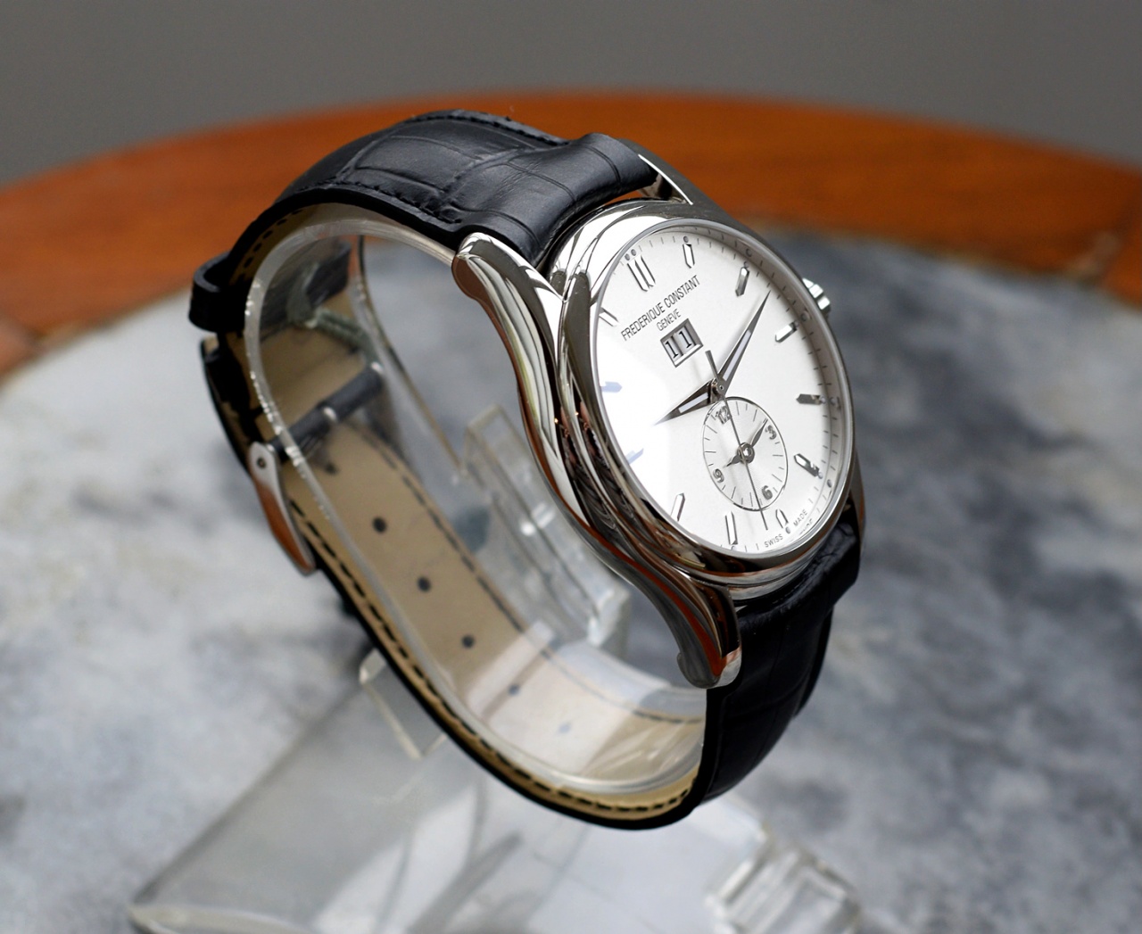 Великолепные по качеству и красоте часы Frederique Constant премиум класса на мануфактурном калибре. Два времени. Большая двойная дата. Завинчивающаяся коронка. 100 метров. Двойной сапфир с антибликом.
