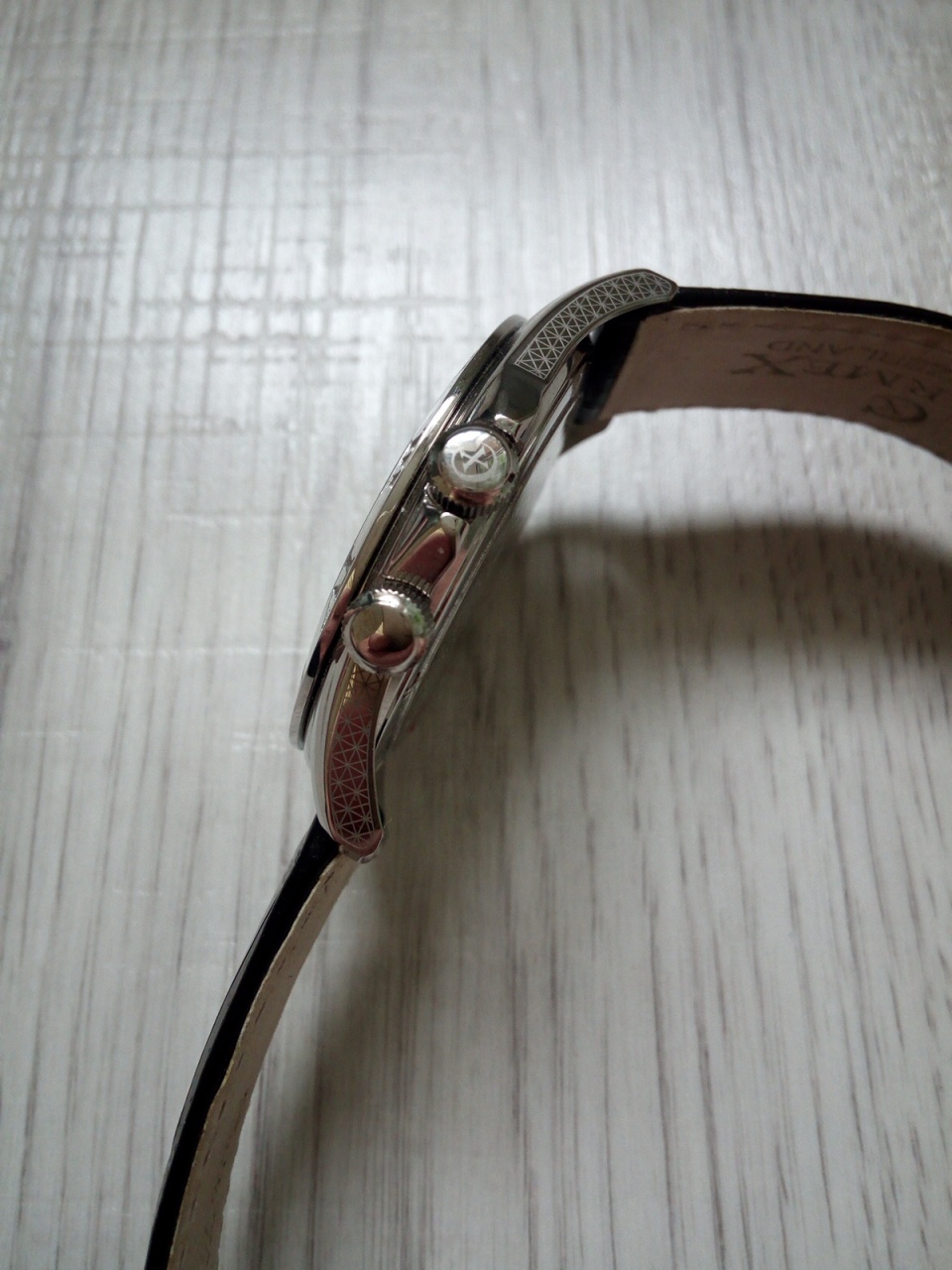 Вторая часовая зона на отдельном циферблате, гравированный безель, солидный мужской размер, отличная отделка корпуса. Часы в хорошем состоянии, стекло чистое, по корпусу минимум следов эксплуатации, на задней крышке - пленка.