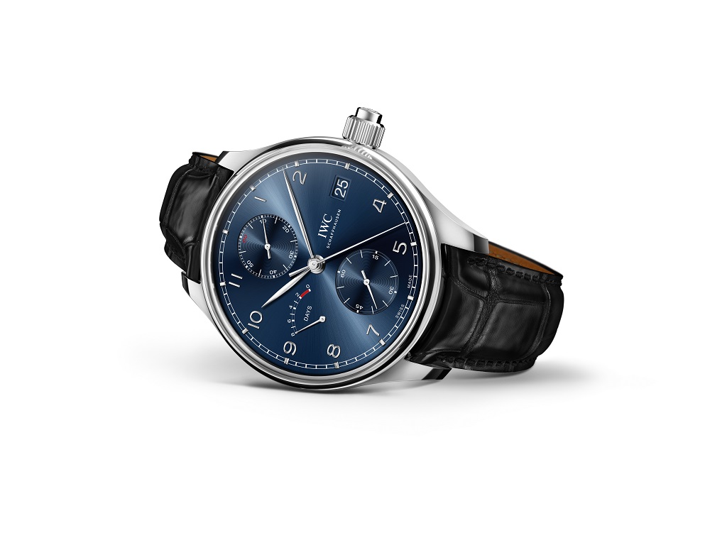 Стальной корпус модели из линии Portugieser насчитывает 46 мм в диаметре и 13.9 мм в толщину (WR 30 м), а в паре с ним выступает черный ремешок из кожи аллигатора производства Santoni.