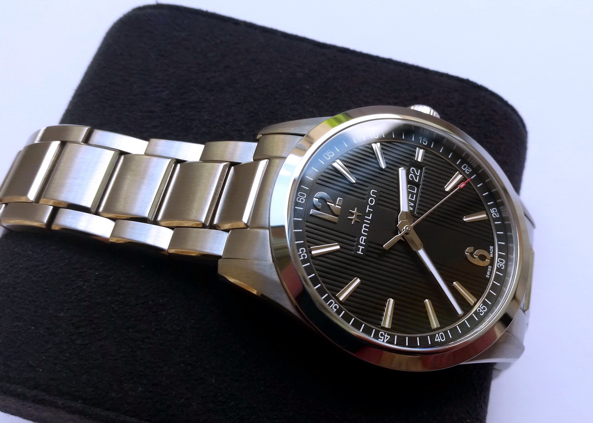 Красивейший Hamilton Broadway Day-Date Quartz H43311135 с "тиковым" циферблатом, с накладными метками и лого.