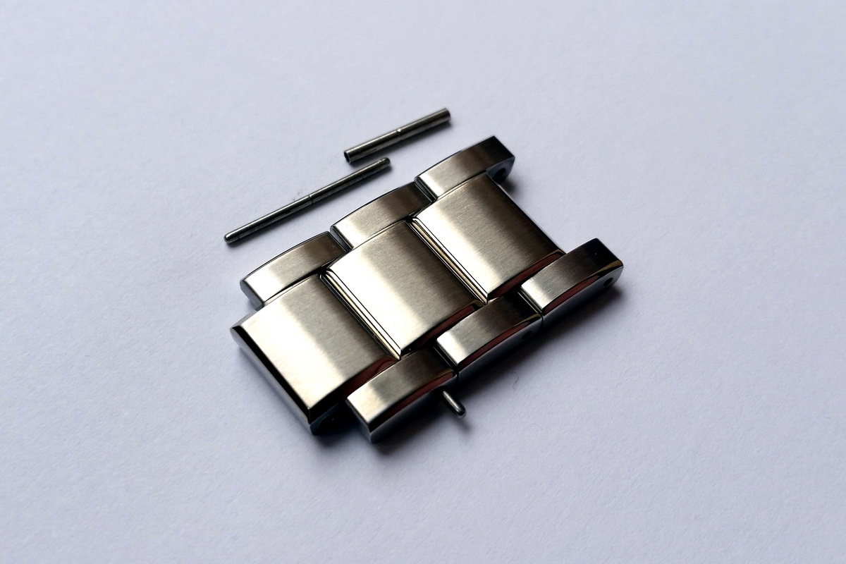 Крепление звеньев такое же, как у Tag Heuer (втулка в центральном звене + шпилька).