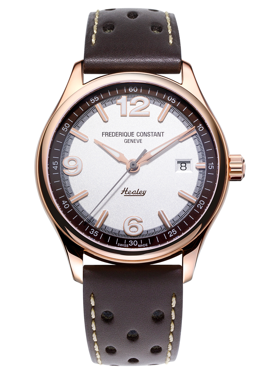 Vintage Rally Healey Automatic. Представленные впервые в 2004 году лимитированные серии Vintage Rally «Healey» отмечают партнерство Frederique Constant Manufacturing с автомобильным брендом Austin-Healey. Frederique Constant решили отойти от традиционных спортивных хронографов, активно использующихся в автомобильной тематике, и модели этого года представляют из себя классический трех-стрелочник в ретро-стиле.