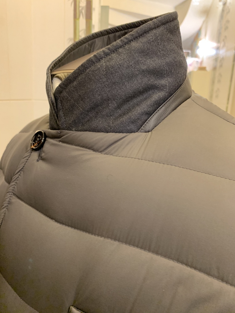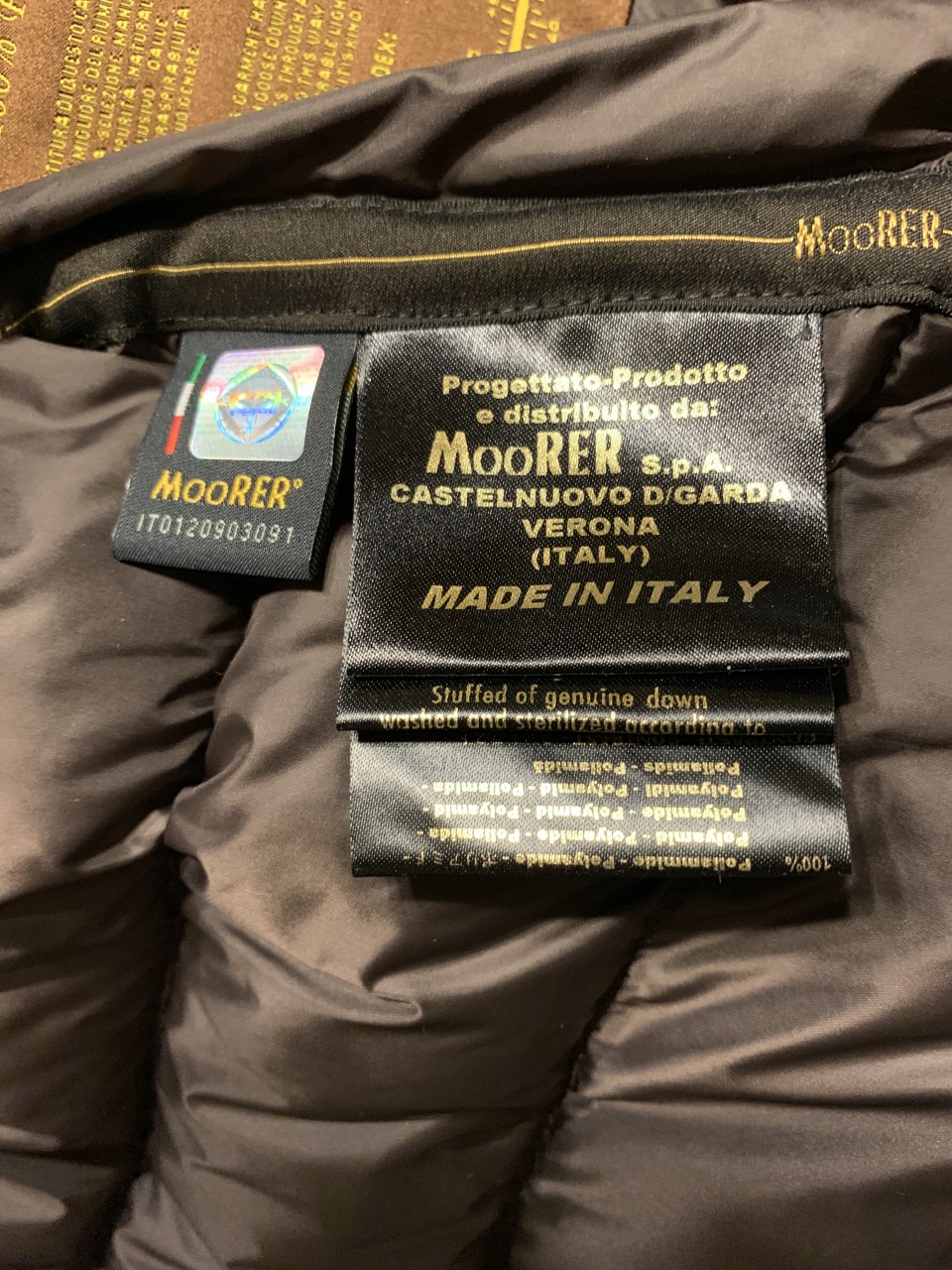 Продается новый зимний мужской простеганный двубортный пуховик итальянского бренда МООRER превосходного исполнения, плотная, не продуваемая ткань, размытого серо-коричневого цвета, логотип, воротник отложной, отделан кожей, застегивается на молнию с двойным ходом и пуговицы, фурнитура с логотипом бренда, вверху прорезной карман, наружные боковые прорезные карманы на кнопках, в одном из карманов прорезной потайной карман на молнии, внутренние карманы на молнии, внутри гусиный пух, состав: 100% полиамид, офисный вариант, закрывает линию пиджака, все бирки прилагаются, гарантированный 100 % оригинал, размер 54 (IT) , производство Италия.