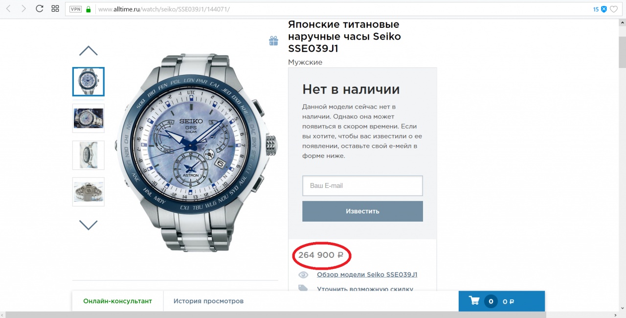 Часы приобретались в РФ в официальном представительстве Seiko за 264 900 руб.