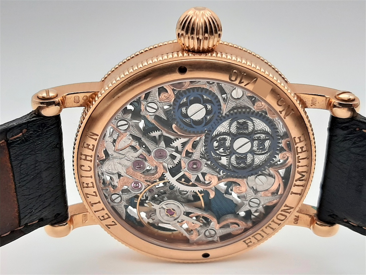 В продаже лимитированные Chronoswiss Zeitzeichen Skeleton из розового золота, всего выпущено 10 экземпляров.