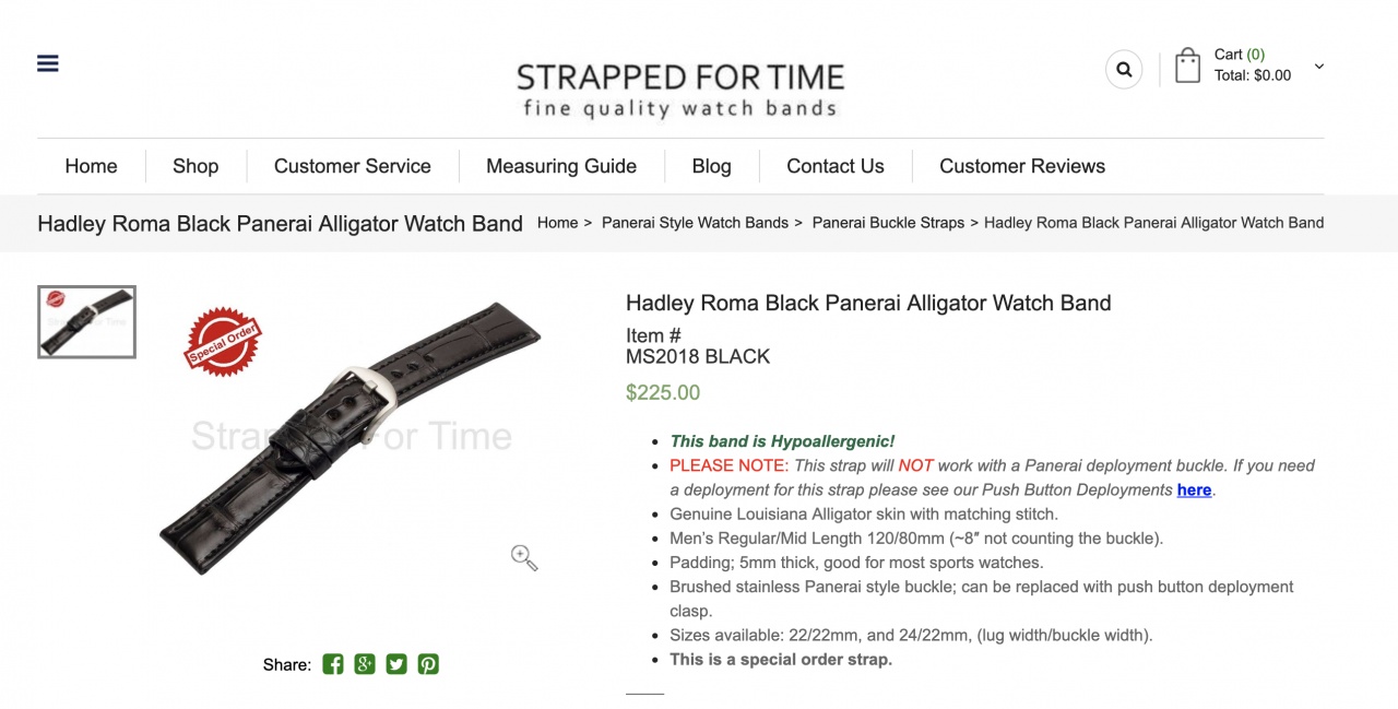 Важная особенность этого ремня - овальные дырки, то есть совместимость с PAM-баклями. У этого бренда обычно ремни в основном для классических часов - соответственно с маленькими "дырочками" под тонкий шип, а эта модель - единственный крокодил в их линейке, сделанный с овальными отверстиями специально под широкую баклю с плоским язычком в ПАМ-стиле.