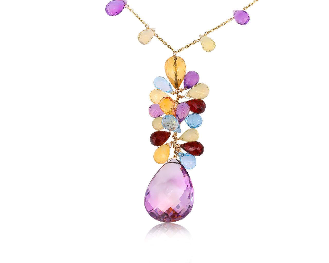 Коктейльное золотое колье с аметистами 30.87ct