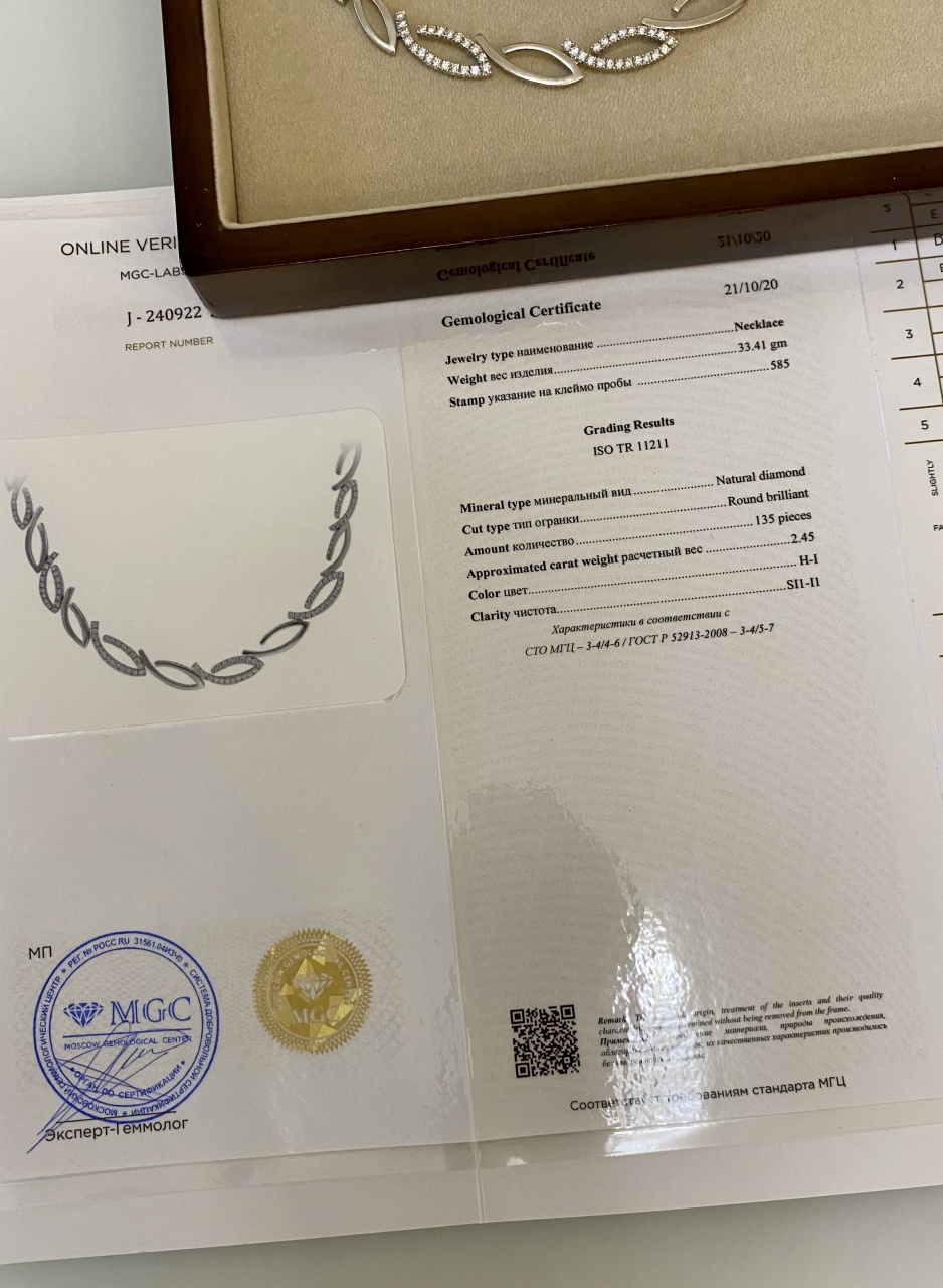 ГОТОВИМ ПОДАРКИ, КОЛЬЕ С БРИЛЛИАНТАМИ 2,45 CT , ТОРГ/ОТПРАВКА