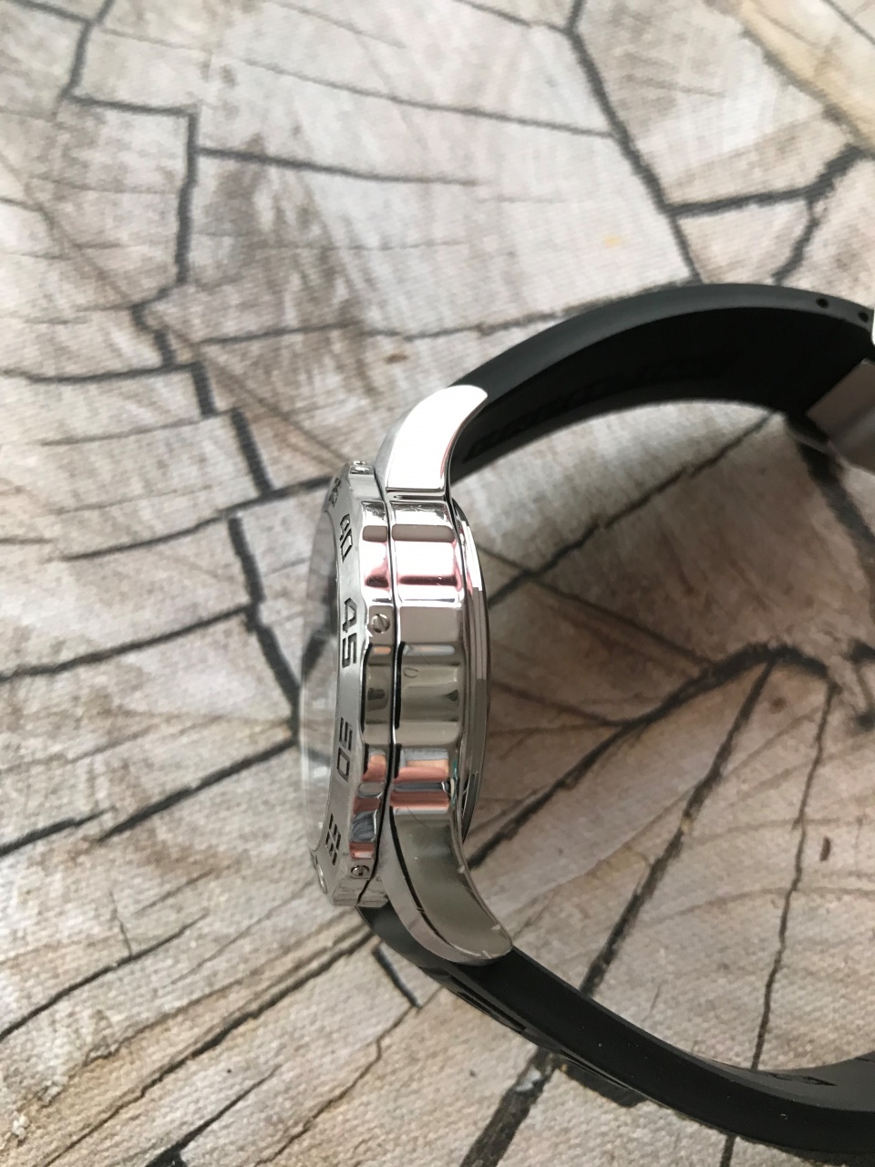 Ремешок: каучуковый (под запястье 19см.) с оригинальной клипсой двойного сложения и боковыми пушерами.