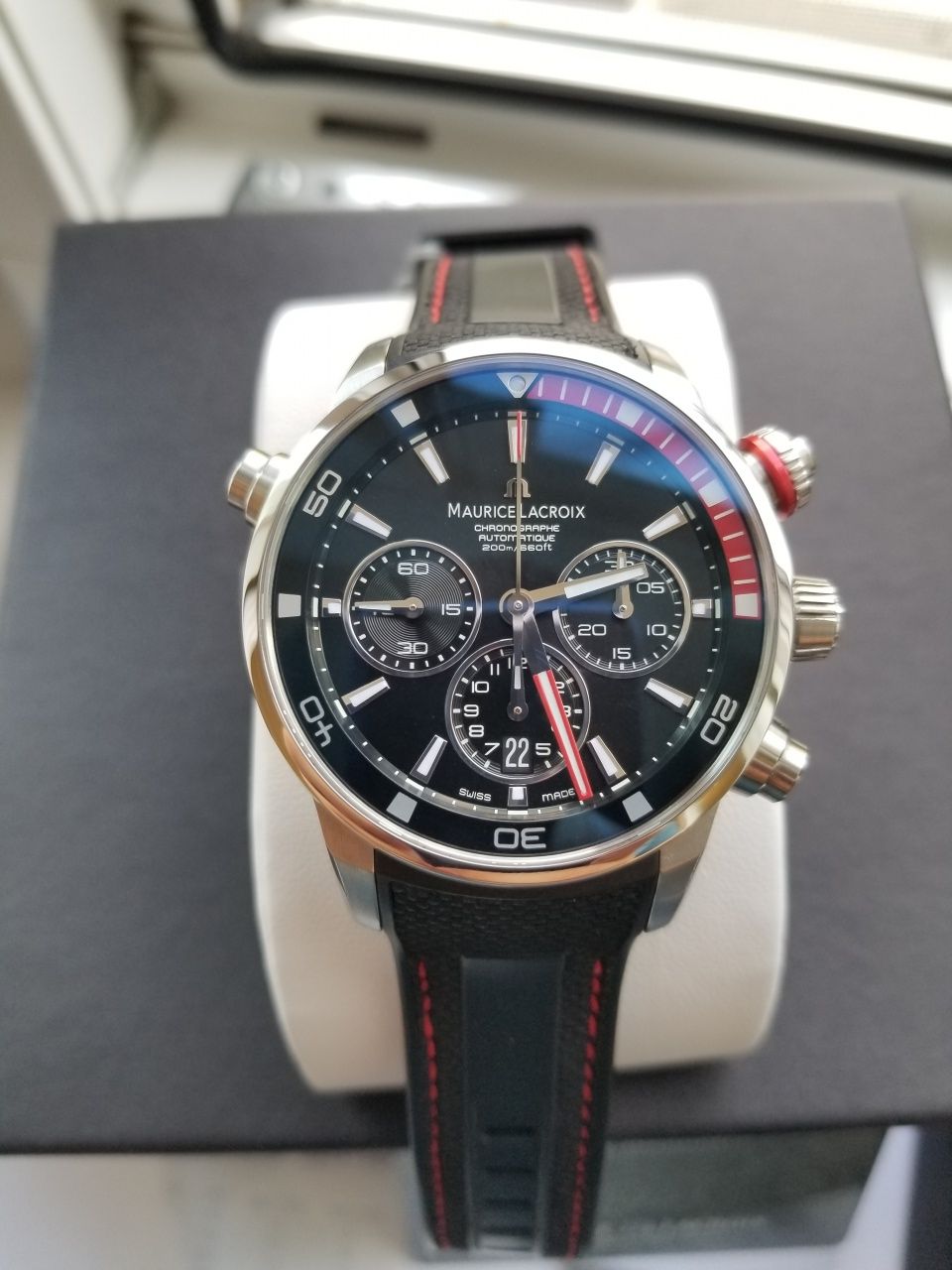 Самая топовая модель серии Pontos S, и одна из самых крутых моделей Maurice Lacroix! Обратите внимание, на корпусе 4 кнопки с обеих сторон, кольца хронографа и логотип производителя расположены симметрично, это отличает топовую модель серии. Безель крутящийся внутренний - защищен от случайного сдвига (удобно для дайвинга). Каучуковый ремешок также влаги не боится и практичен во всех смыслах. Внешний вид часов - бомба, проработка в самых мельчайших деталях, этим известны все топовые модели Maurice Lacroix, проработка которых соответствует уровню самых топовых AAA-rated брендов, за эту цену ничего круче и достойнее не найти.