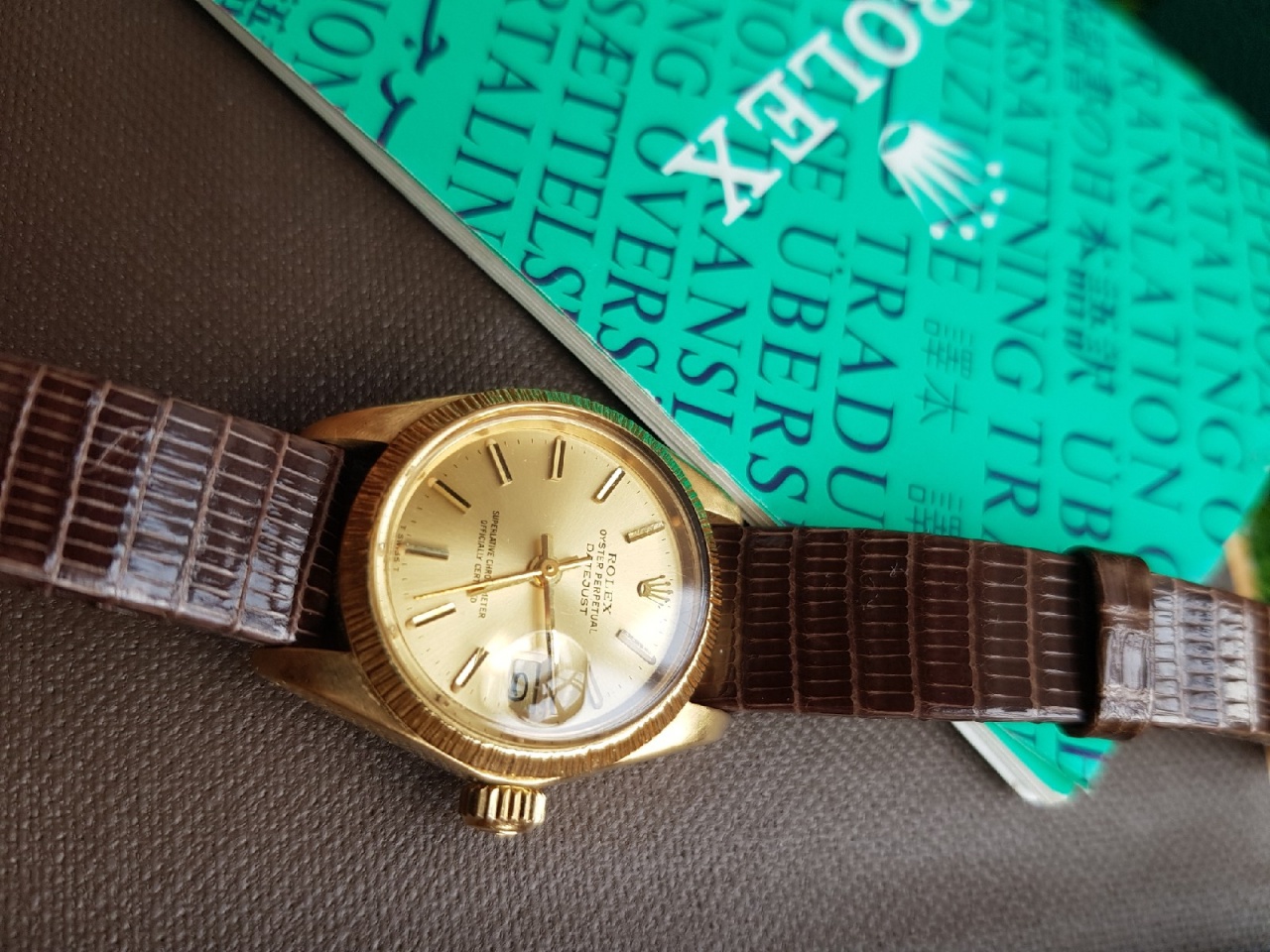 Классика всегда в моде, она выдерживает испытание временем и подходит для любого случая. В небольшом корпусе модели Lady-Datejust диаметром 26 мм заключены все качества знаковой модели Rolex . Неподвластная времени элегантность этого сокровища на каждый день подчеркивается волнующими и соблазнительными расцветками циферблатов, благородством материалов и сверканием бриллиантов. Здесь часы Lady-Datejust представлены в версии из золота. Циферблат цвета шампань. Полированный круглый корпус из нержавеющей стали (диаметр 26 мм, толщина 10 мм) с завинчивающейся заводной головкой Triplock. Безель с 18-каратного золота с 4привносит дополнительный штрих великолепия и утонченности. Механизм на Caliber 2030 с автоматическим заводом ,Oyster Perpetual сертифицированный COSC. Центральные часовая, минутная и секундная стрелки. Водонепроницаемость до 100 метров (330 футов).