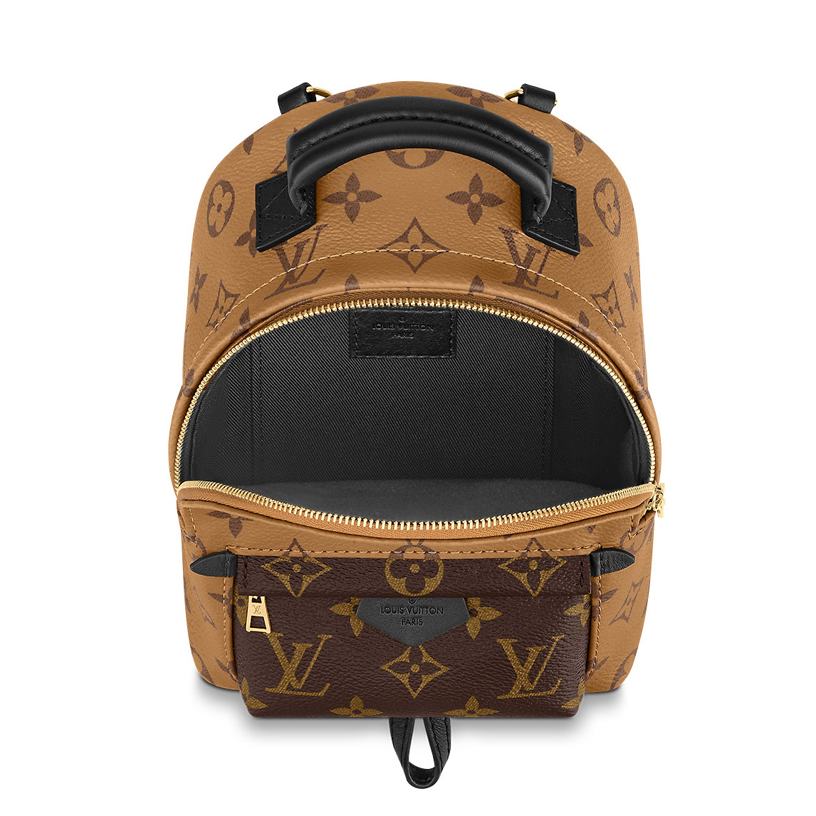 "Николя Жескьер представил культовый рюкзак в новом свете: из практичного аксессуара он превращается в модную и привлекательную сумку. Мини-версия имеет регулируемый ремень, позволяющий носить эту модель через плечо. Моментально снискавший популярность ценящих стиль женщин во всем мире и ставший бестселлером Дома, рюкзак в данной версии приобретает свежий ультармодный акцент благодаря знаковому узору Дома Louis Vuitton в особом исполнении Monogram Reverse."