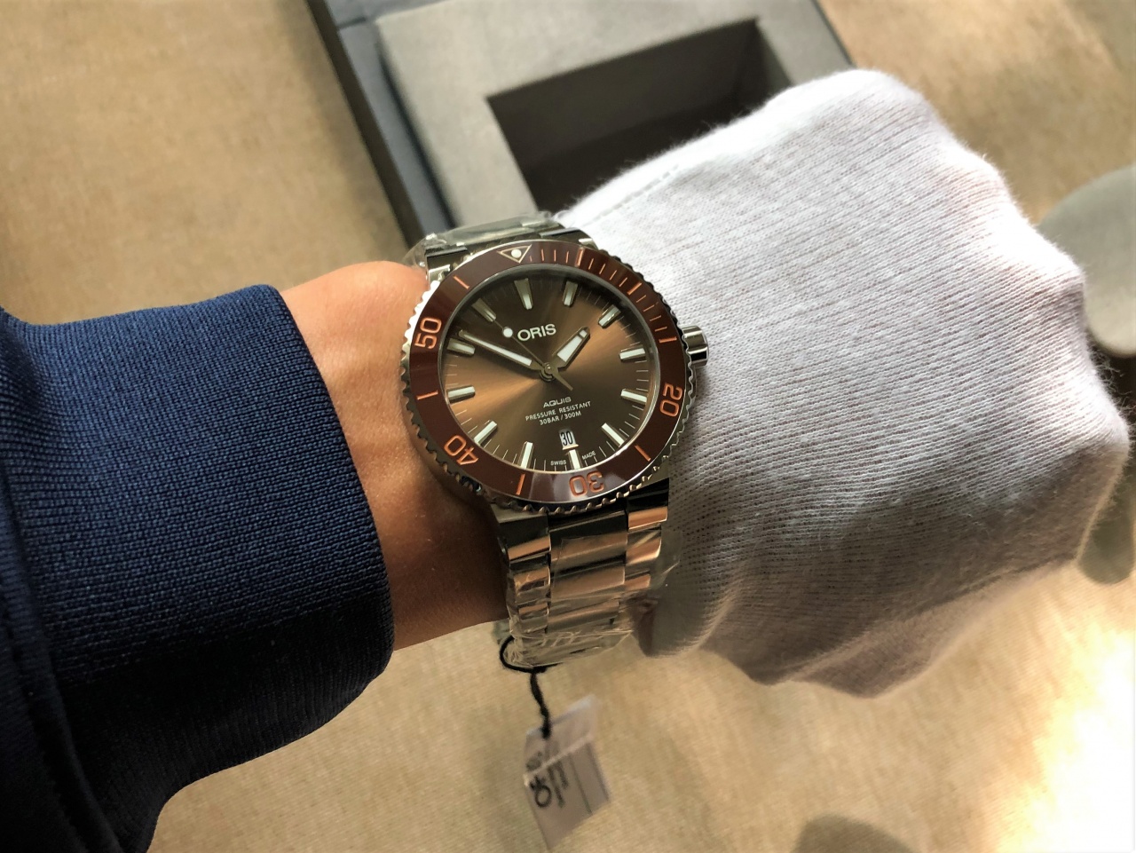 C очень интересным, редким, красивым коричневым циферблатом с эффектом sunburst, на стальном браслете.