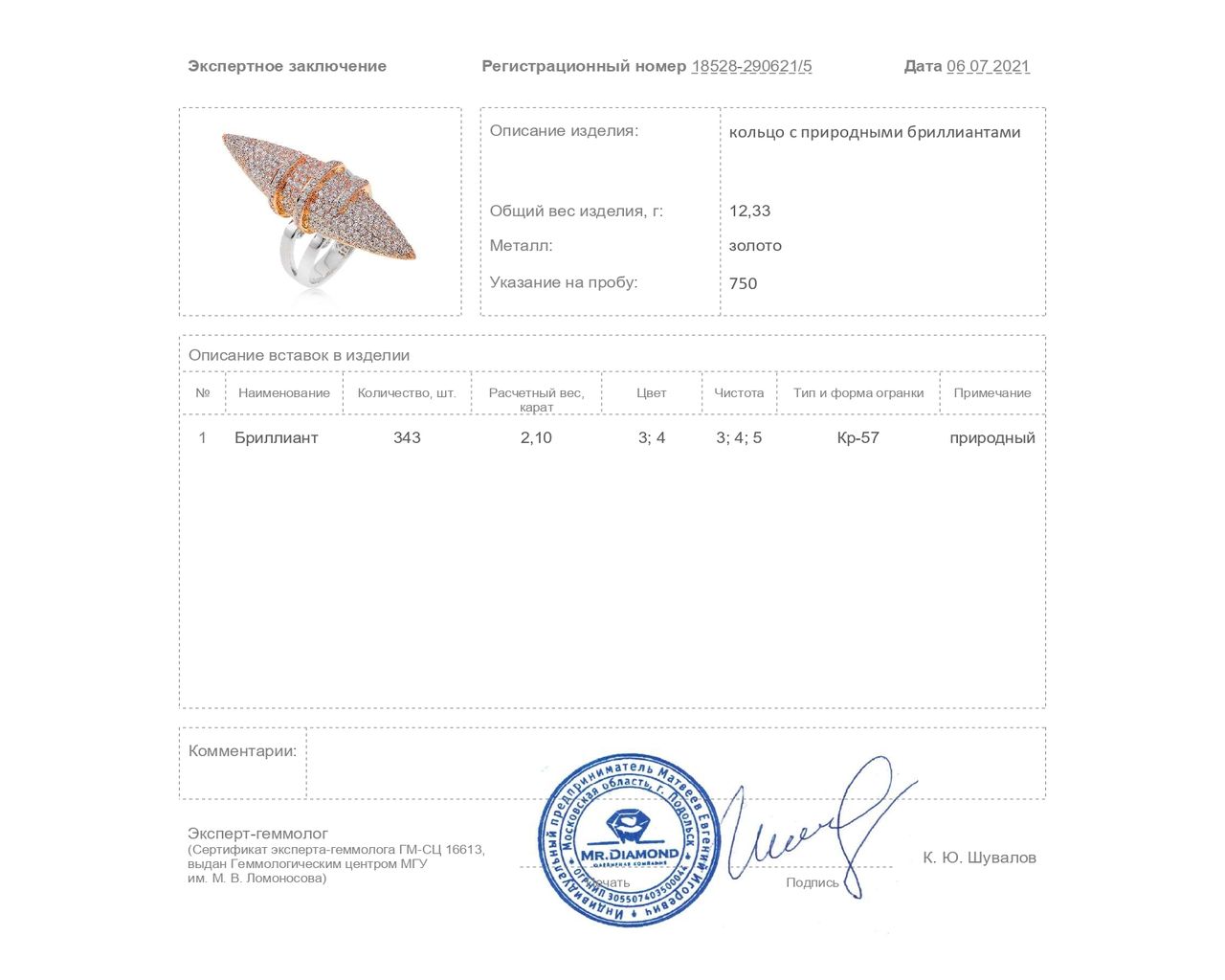 Шикарное золотое кольцо с бриллиантами 2.10ct