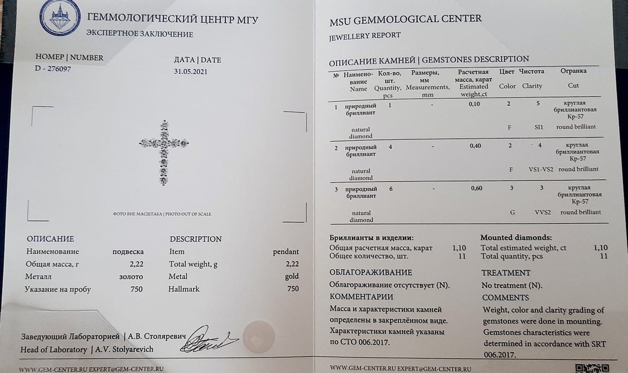 ПОДВЕСКА "КРЕСТ С БРИЛЛИАНТАМИ" 1,10 КАРАТ (аттестат МГУ)! - Часовой форум Watch.ru