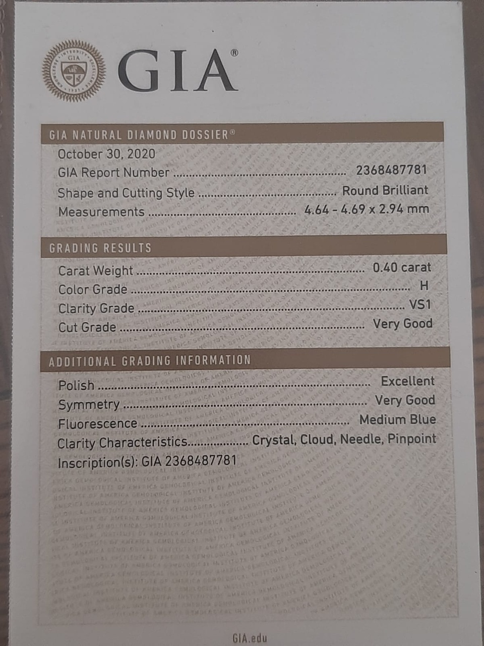 Подвеска с бриллиантом 0,40 карат (сертификат GIA)!