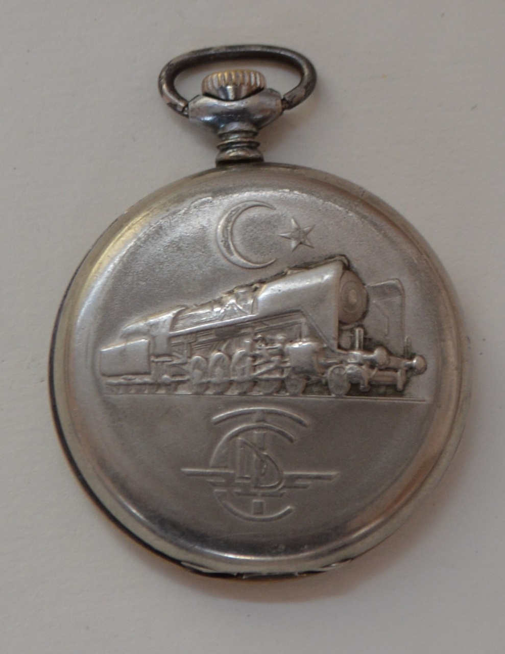 Карманные часы Velis Incabloc 17 Jewels Swiss Made с изображением паровоза и полумесяца на крышке