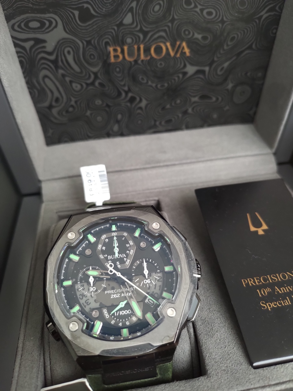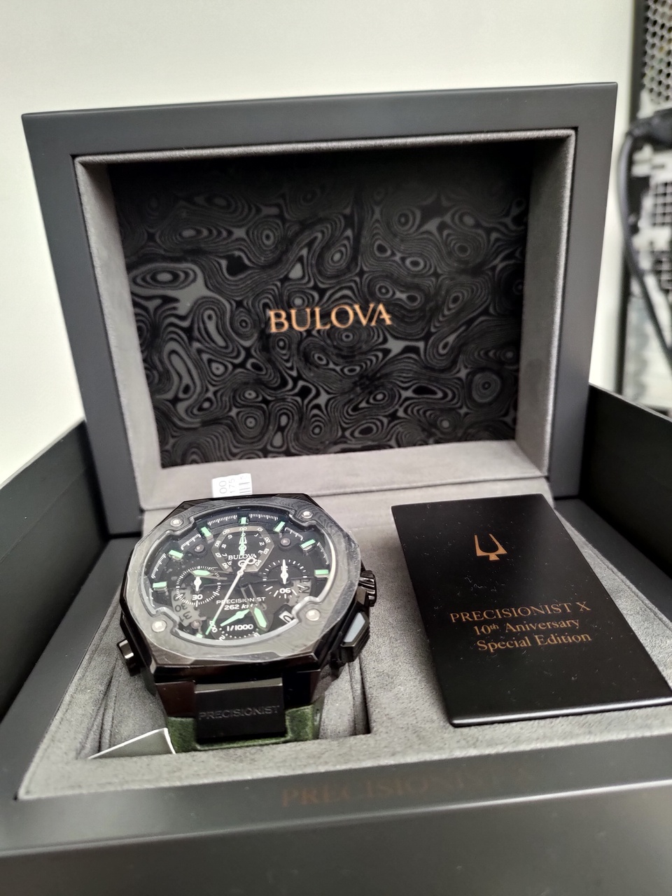 Коллеги, продам замечательные юбилейные Bulova Precisionist X Special Edition 98B355 с безелем из дамасской стали. Это редкая модель, которая была выпущена к юбилею механизма Precisionist. В Украину официально не завозили, вещь, можно сказать эксклюзивная.