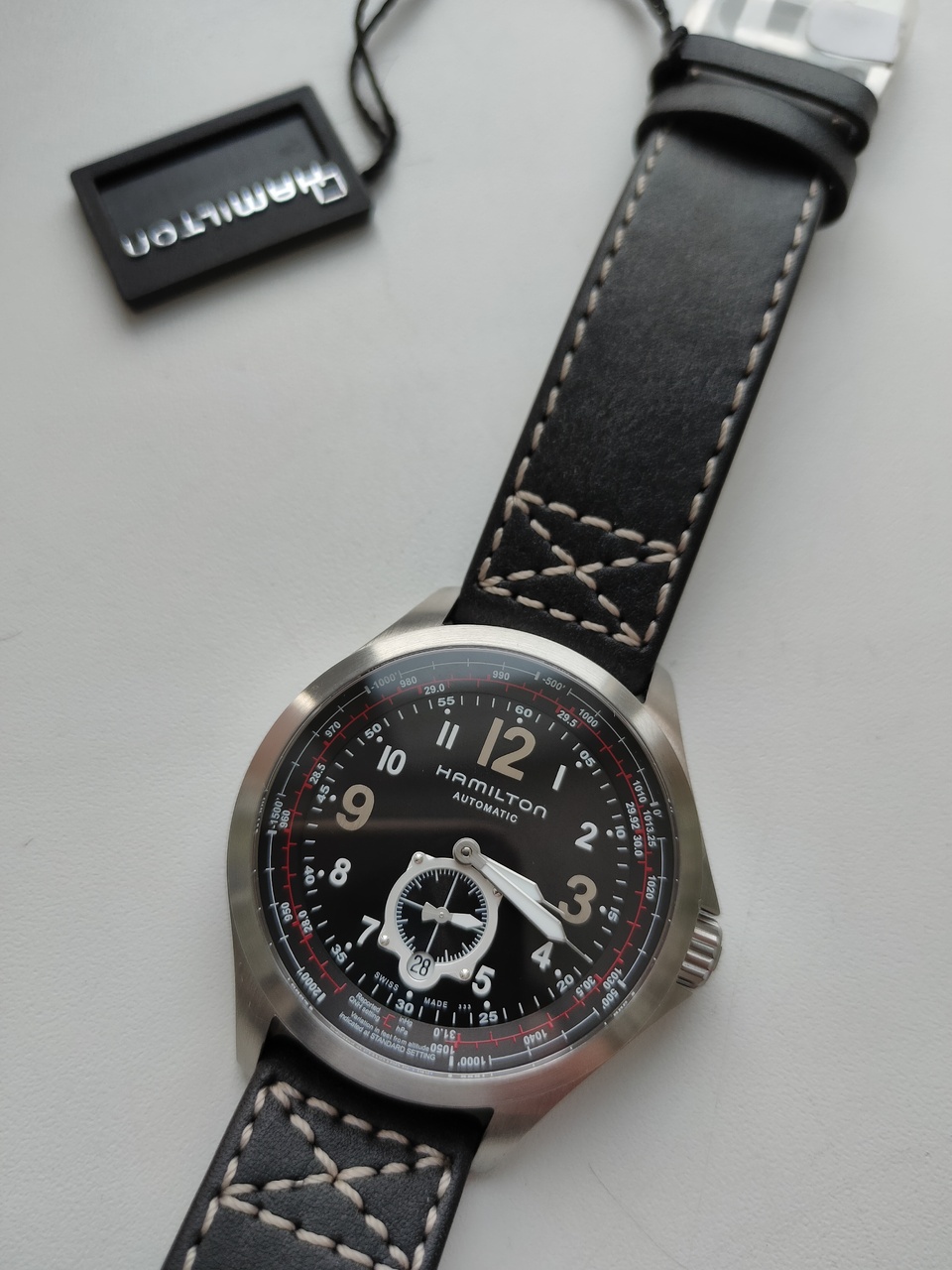 В продаже редкий пилот в неизбитом дизайне от уважаемого производителя. Модель, над которой дизайнеры потрудились на славу. В моменты скуки и лени, сняв их с руки, можно долго изучать все фишки и полезности дизайна данной модели. Чего только стоят шкала измерения давления и высоты, прозрачная задняя крышка с металлической полосой по центру с выгравированным на ней авиационным алфавитом и малая секунда, оформленная в виде приборной доски самолета