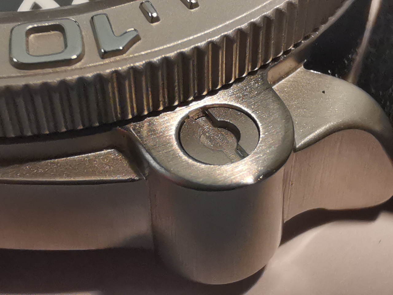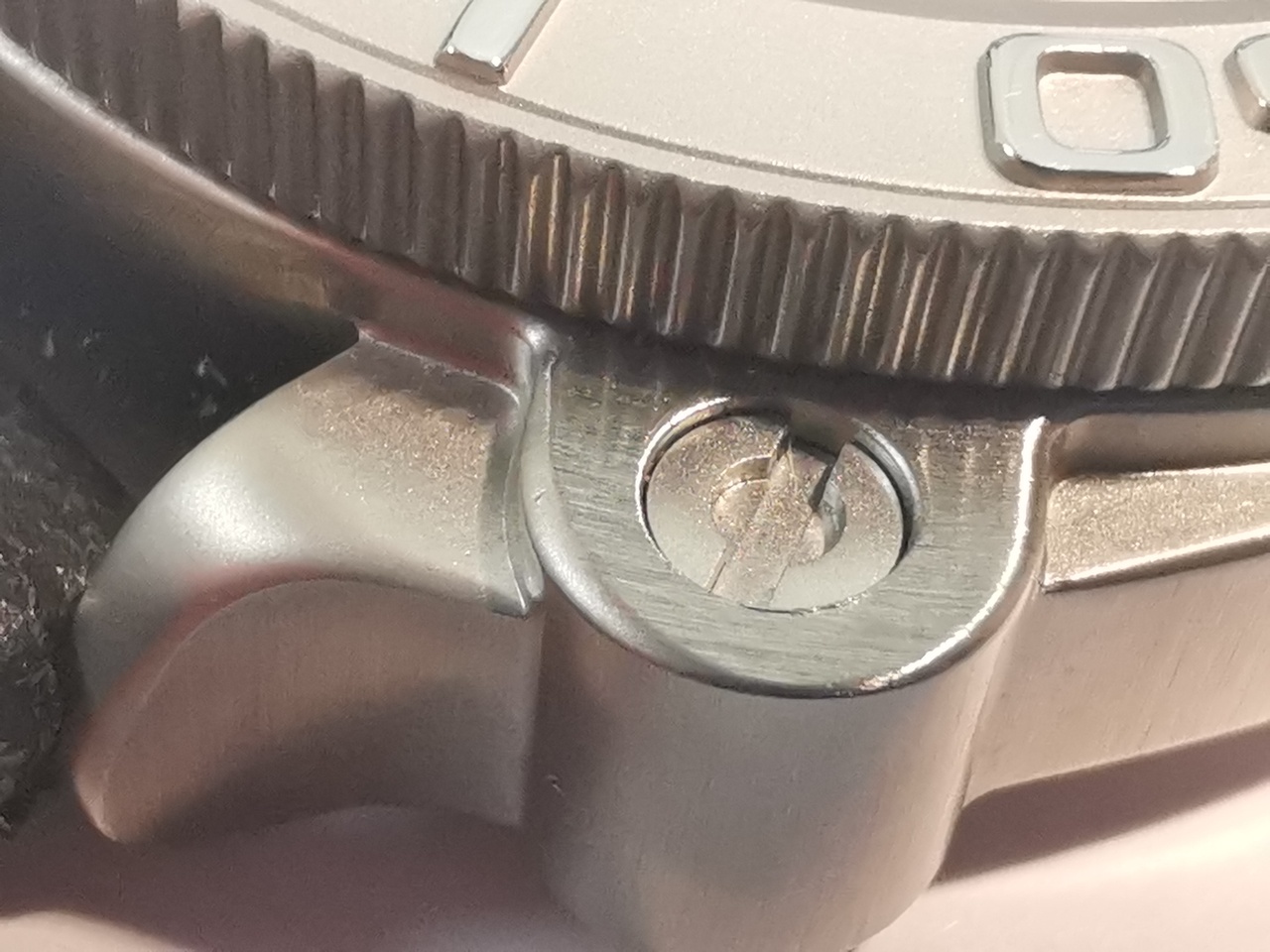 И немного критики выражу по отделке корпуса часов. Декоративные выступы имитирующие крепления прибора к основанию, проработаны с недостаточной детализацией. Вероятно, при формировании корпуса методом горячего штампования, не было оказано достаточно давления для заполнения металлом всех уголков формы, особенно периферийных. После обработки корпуса под сатинирование, непроработанные детали выглядят отличающимися по текстуре «зализами».