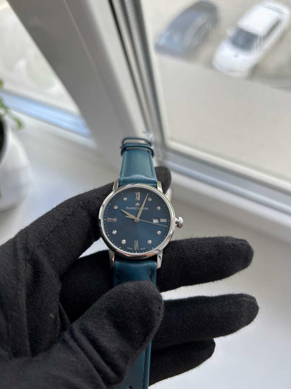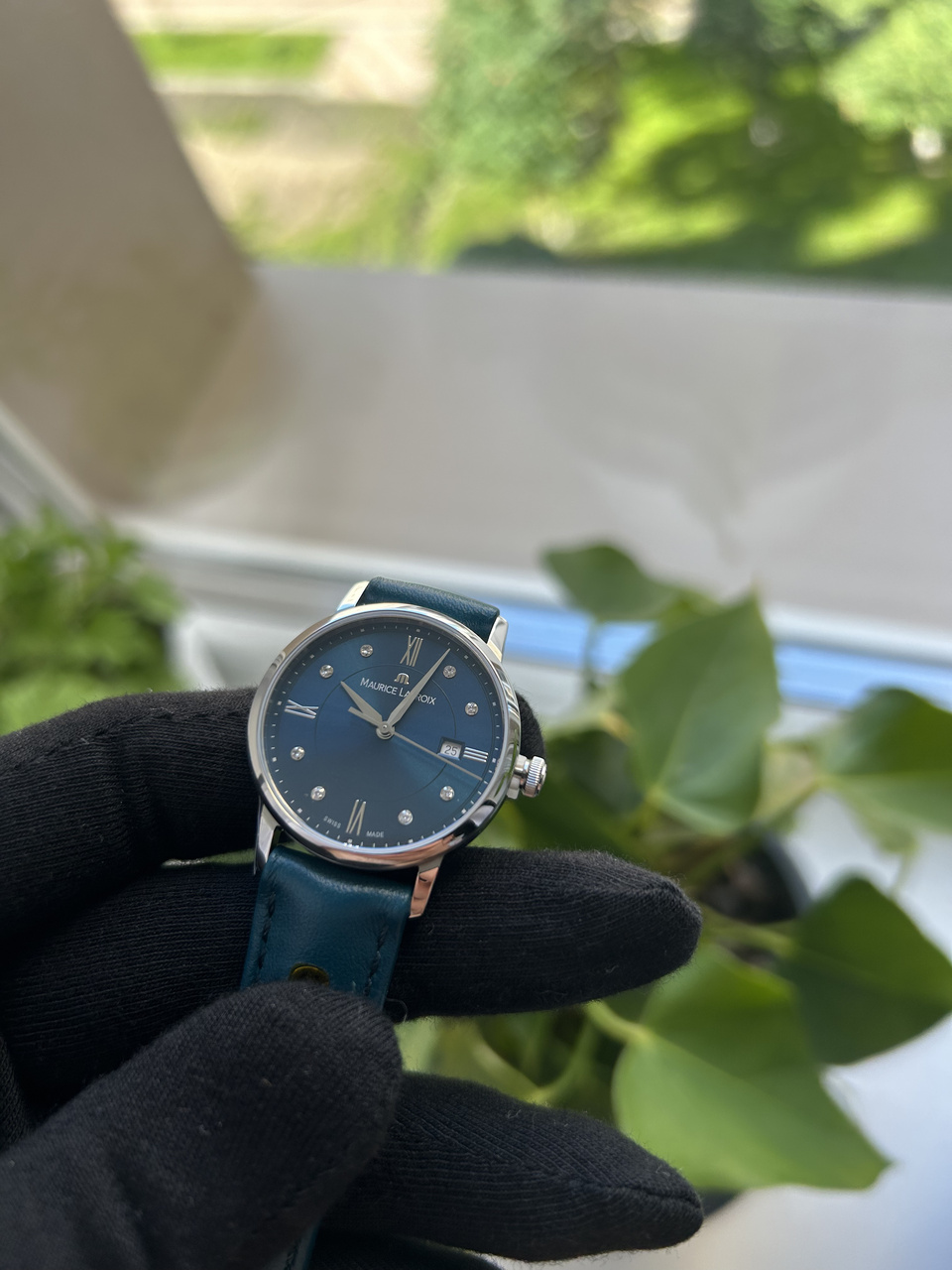 Цифер просто невероятного насыщенного сине-зеленого цвета, меняющего оттенок. Метки-бриллианты, идеально гармонирующий с цифером ремешок с функцией быстрой замены. На заводной головке заводская пломба. В живую часы выглядят статусно, дорого и явно претендуют на идеальную покупку или безупречный подарок