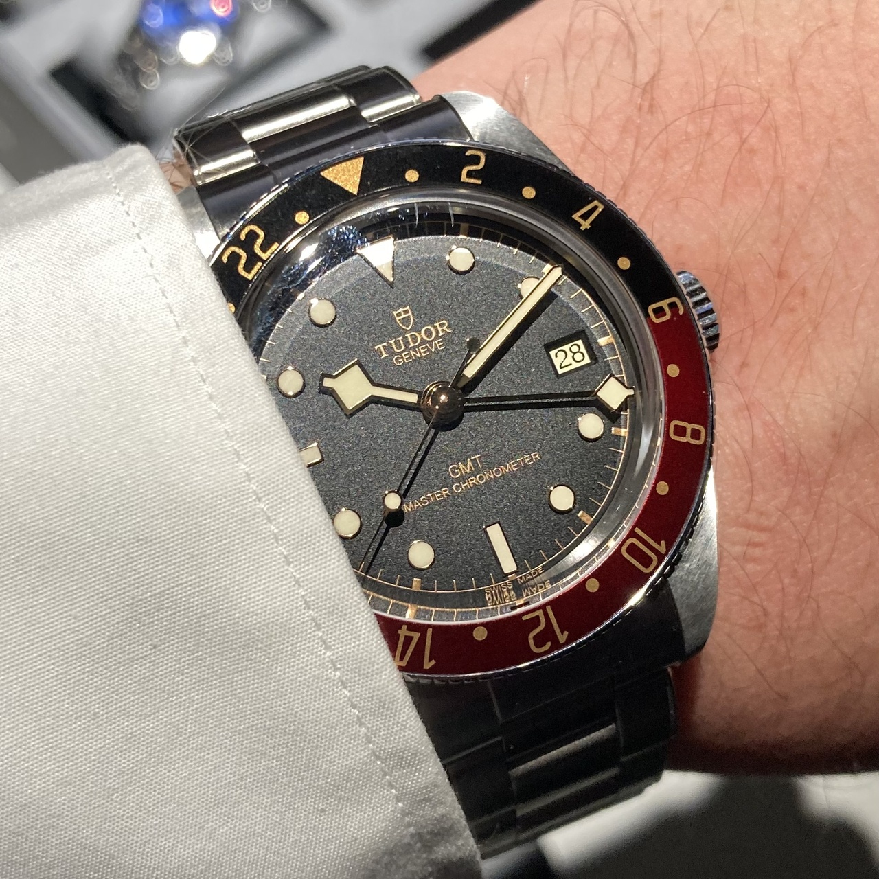 Новые часы Black Bay 58 GMT оснащены новым Мануфактурным калибром TUDOR среднего размера с функцией GMT, дополненным безелем в теплых бордовых, черных и золотистых тонах. Универсальный корпус часов Black Bay 58 отныне оснащен функцией GMT.