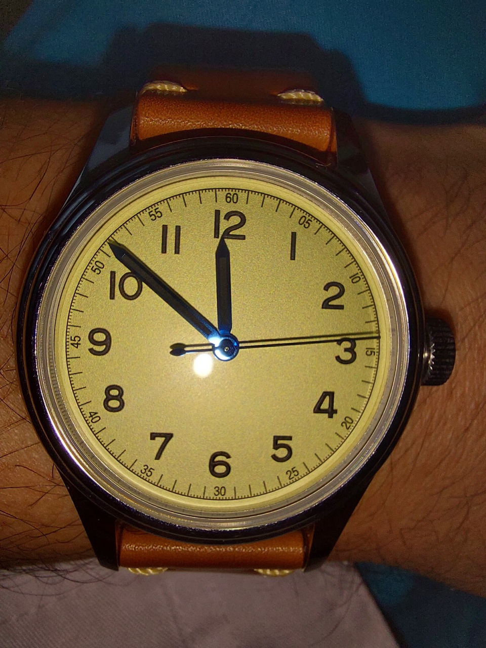 И вторые часы(самое вкусное напоследок), всем уже хорошо известные Восток в 55ом корпусе. Здесь, на форуме уже были хорошие фото и обзор этих часов, автора не помню к сожалению, спасибо ему. Мне кажется эти часы немного не дооценнены, мало про них известно. А часы хороши. Тем более с обновлённом ремешком появились новые дополнительные штрихи к ,,портрету,,. Сочетание зелёного цифера и коричневого ремешка добавило часам основательности, солидности, статусности. А стальной цвет корпуса, всё же, оставил их лёгкими, не легковесными, а не грузными. А белые, контрастные на зелёном фоне метки, придают какой то праздничный, не скучный общий вид этим часам.