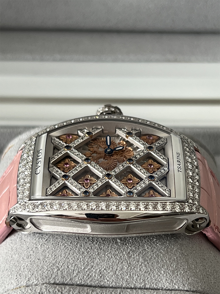 Компания CVSTOS представляя новую коллекцию TSARINE в 2017 году заявляла что при создании циферблата часов Diamonds Russian Coat of Arms вдохновлялась лучшими работами Дома Фаберже, что как нельзя лучше соответствует "царскому" названию коллекции.