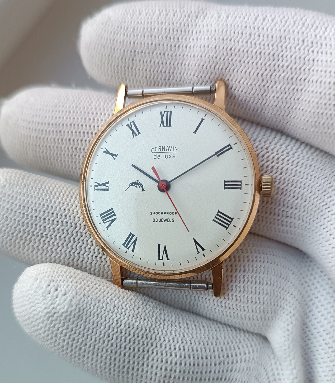 Циферблат оригинальный 100%, только часы котлетные, цифер со стрелками вставлен в более ранний луч, этому циферблату соответствует позолоченный корпус с маркировкой в каратах, механизм с маркировкой "SU", крышка с надписью cornavin
