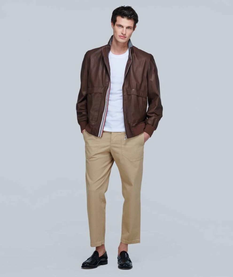 Классический универсальный стиль куртки из кожи выглядит благороднее за счёт ценных материалов Brunello Cucinelli. Характерные широкие накладные карманы,воротник-стойка и застёжка на крупную молнию определяют культовый стиль модели.Куртка из кожи теленка - невероятно изысканной кожи, характеризующейся тонкой и гладкой поверхностью, которая подчеркивает сезонные оттенки с глубоким и однородным эффектом. Классические детали из трикотажа в рубчик на манжетах и нижнем крае завершают изделие.