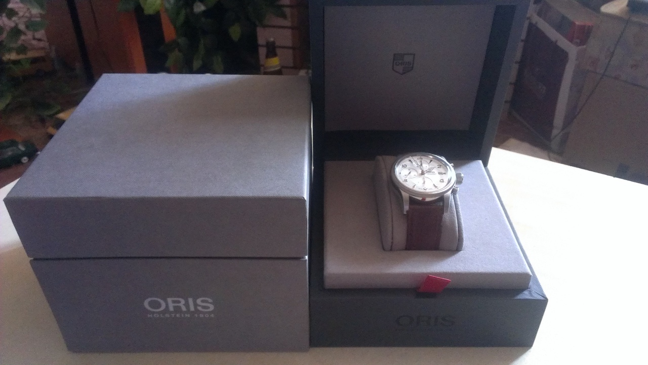 ORIS Big Crown Chronograph Oskar Bider 674 7567 43 61 Автоматический механизм калибр Oris 674 на базе Valjoux 7750 (25 камней; 28800 полуколебаний/час; запас хода 42 часа; противоударное устройство оси баланса Incabloc). Хронограф с точностью 1/4 сек. Дополнительные циферблаты: (12) 30 минутный накопитель; (9) смещенная секундная стрелка; (6) 12-ти часовой накопитель. Окошко даты. Автоподзавод. Фирменный ротор ORIS High Mech с красным полем. Запас хода 42 часов. Точность хода +1 сек./в сутки. Механизм производится с 1977 года.
