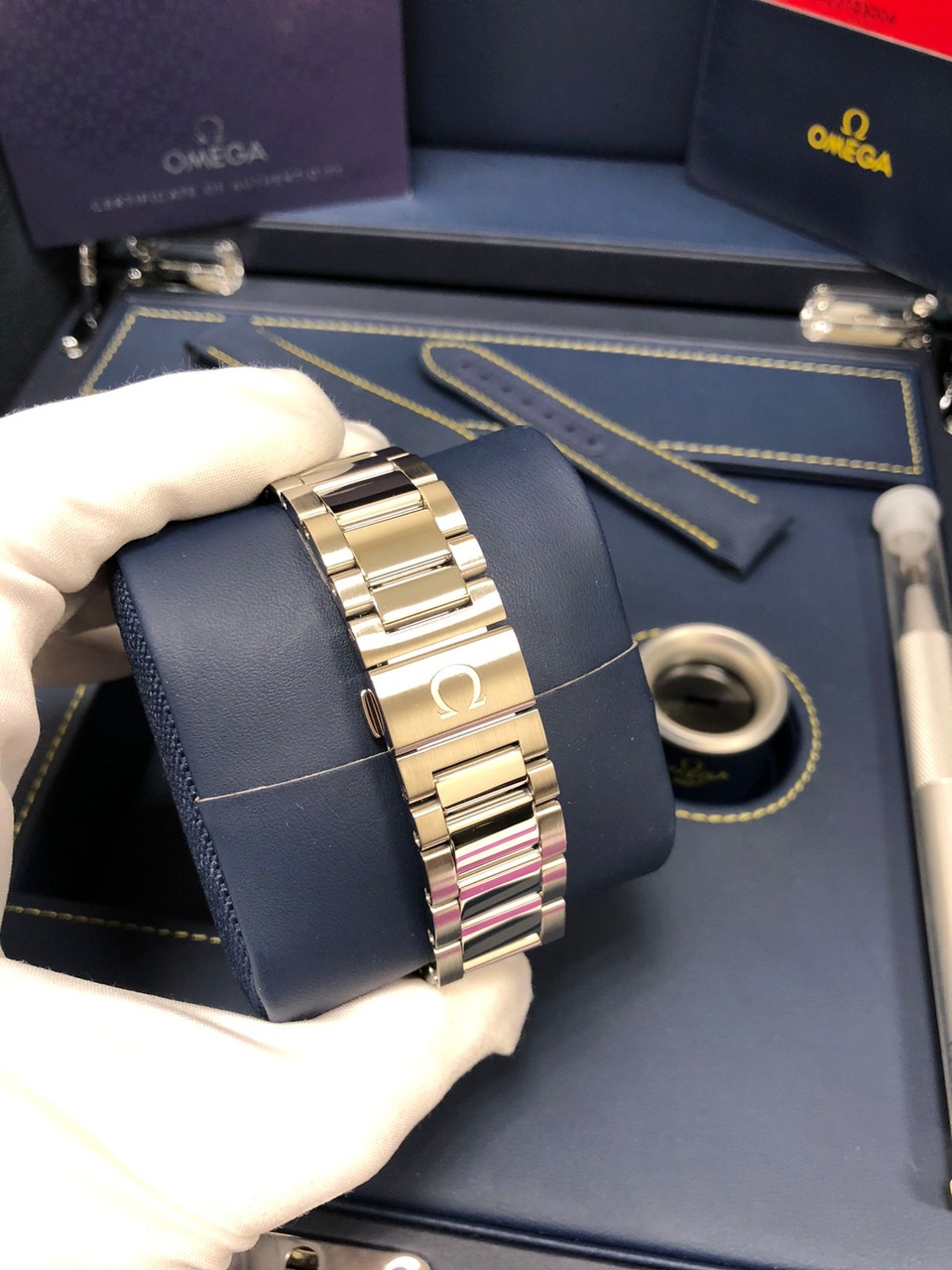 Не поскупилась Оmеgа и на комплектацию этой серии Sеаmаstеr Аquа Теrrа, огромная коробка в которой нашлось место документам, включая паспорт каждого номера лимитки; лупа с в фамильных цветах Бонда; запасной ремешок и инструмент для его установки