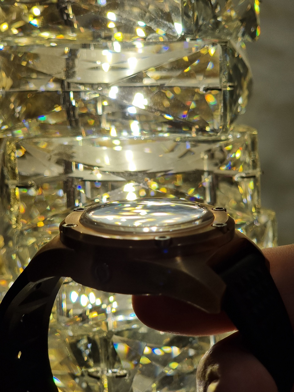 Сапфировое стекло с выпуклым покрытием толщиной 4,8 мм с антибликовым покрытием.