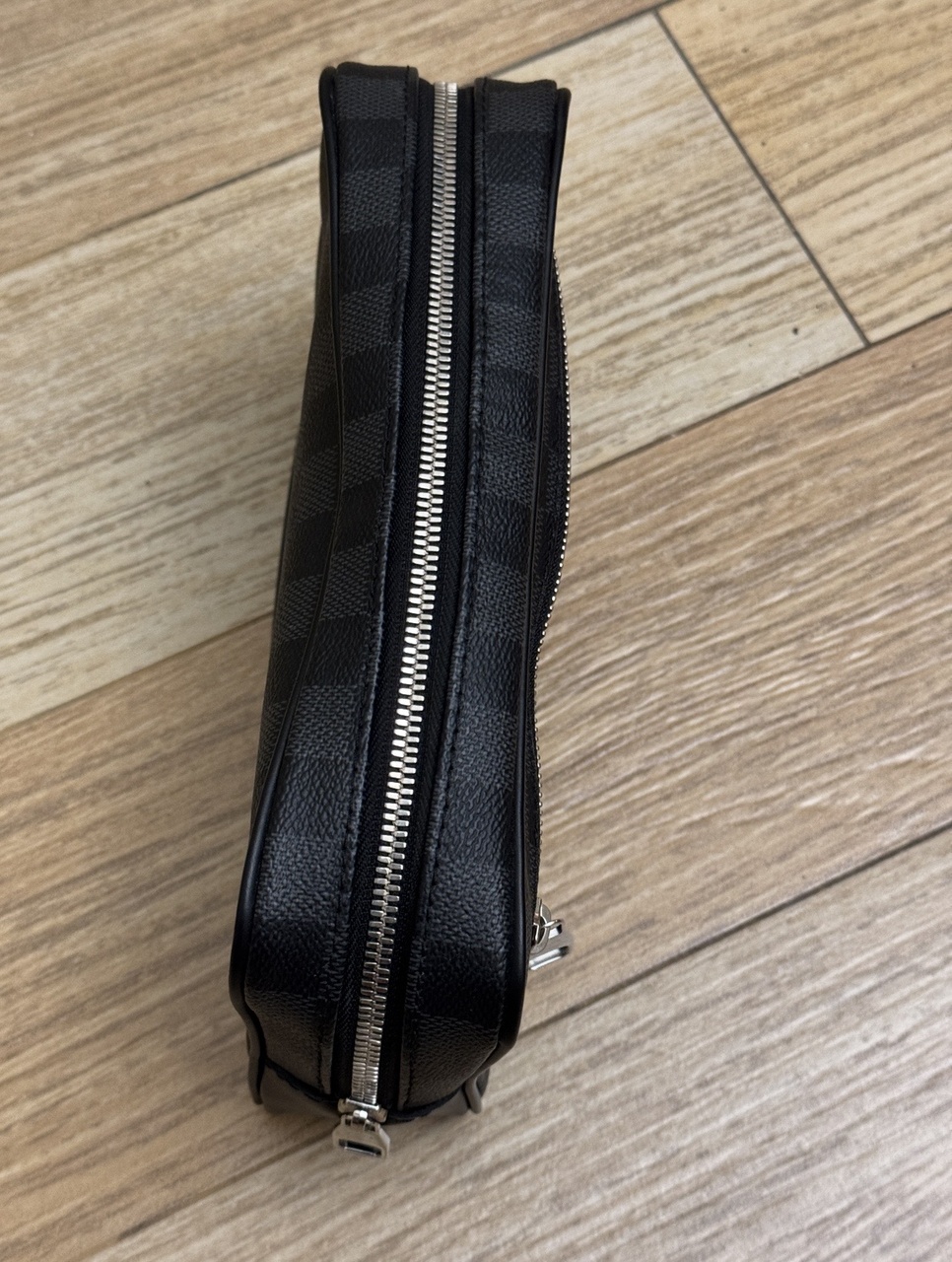 Клатч Kasai отличается практичностью благодаря широкому отверстию на молнии и многочисленным внутренним и внешним карманам и слотам. Конструкция, выполненная из легендарной канвы Damier Graphite, допускает различные варианты ношения: в руке или с помощью ремня на запястье.