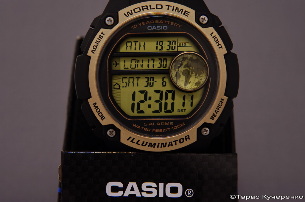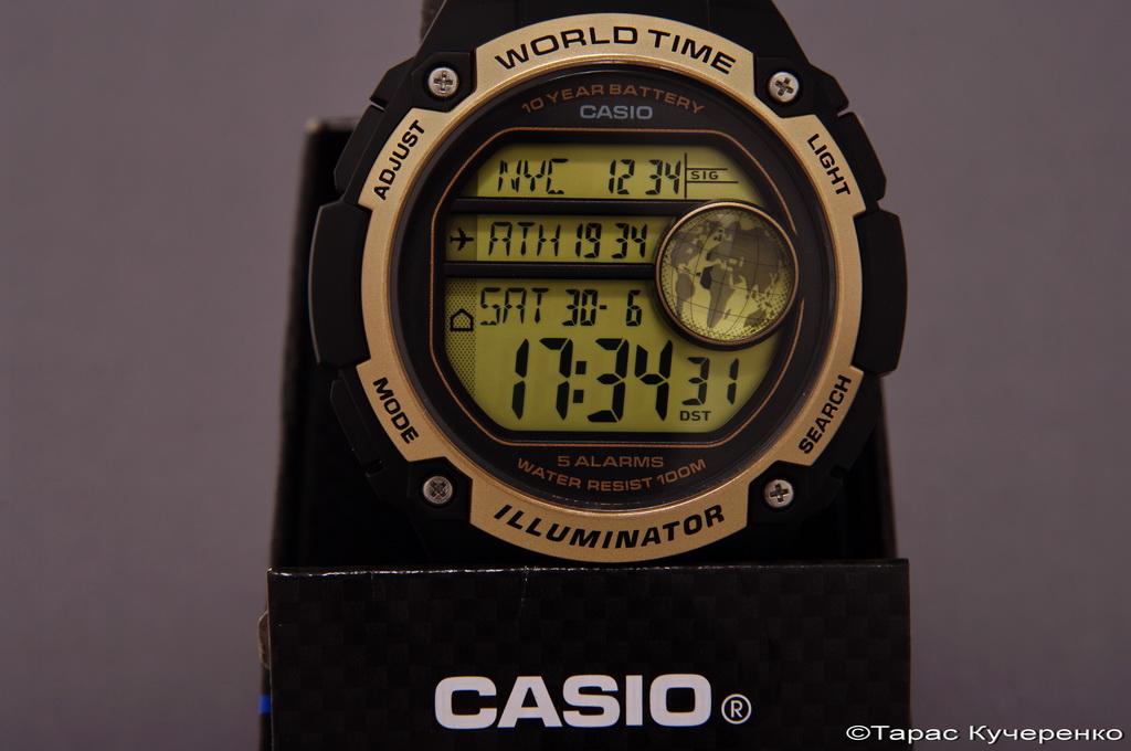 Нажатие правой нижней кнопки меняет часовые пояса. Были Афины основным временем выставлены, стал Лондон