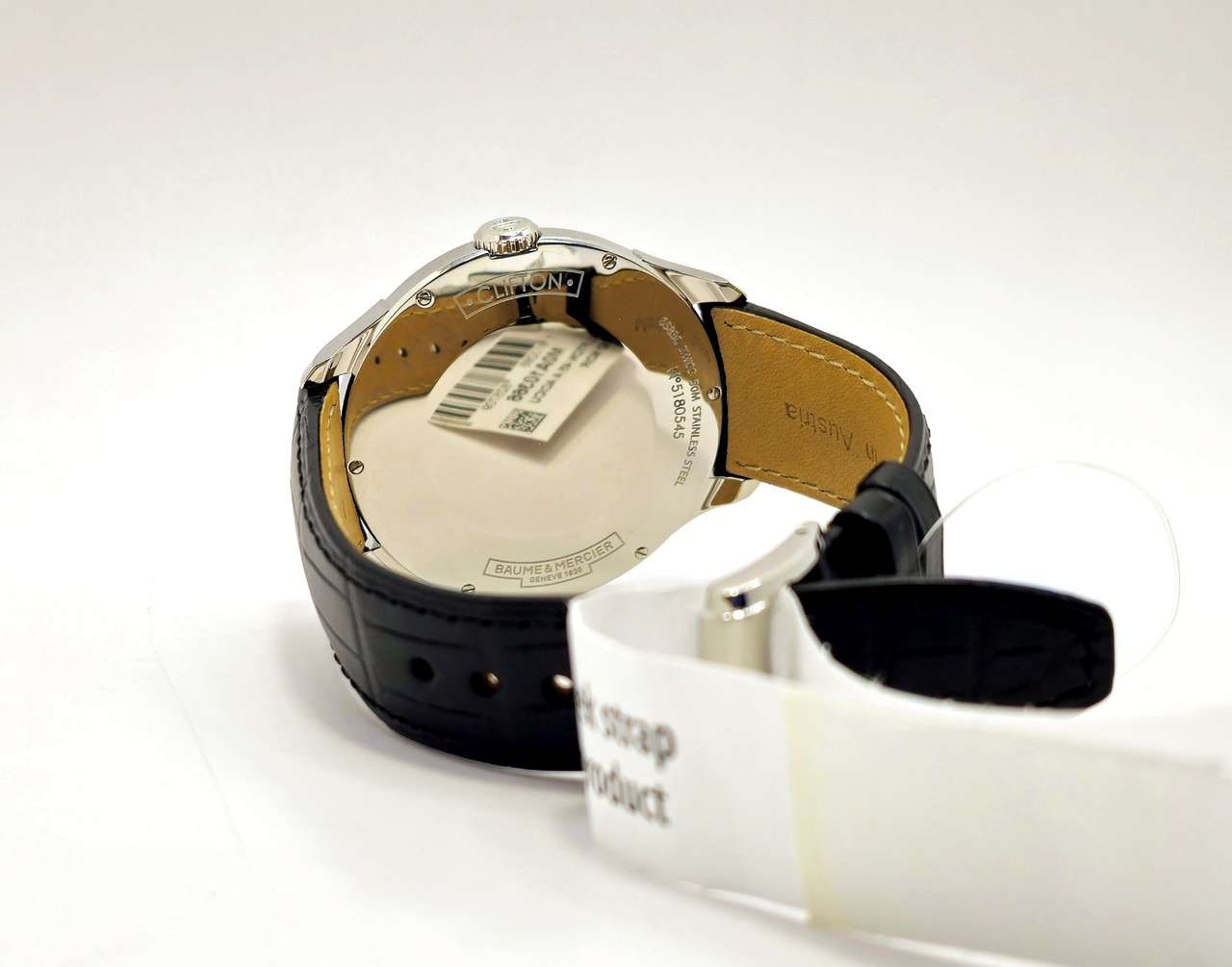 Швейцарские мужские часы от Baume & Mercier — идеальный выбор для тех, кто ценит классический и неподвластный времени стиль. Качество изготовления очевидно в каждой детали, от полированного корпуса с матовыми боковыми гранями до четкого и лаконичного дизайна циферблата. Чёрный кожаный ремешок одновременно удобный и стильный, а пряжка- шип обеспечивает надежную посадку. Независимо от того, одеваетесь ли вы для особого случая или на каждый день, эти часы Baume & Mercier обязательно украсят ваш образ.