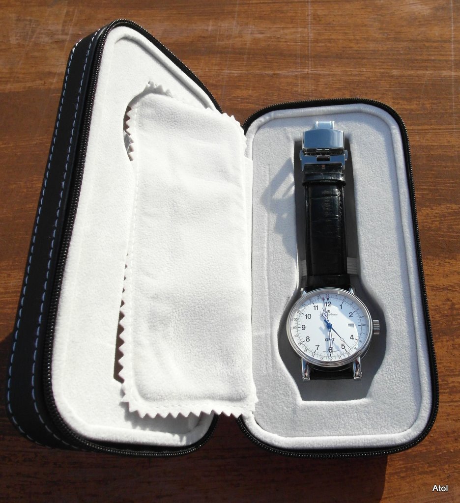 Покупал напрямую у Роланда Кеммнера в его магазине на е-бей. Сделаны в Германии. Часы отличного качества в ретро-стиле с декорированным механизмом ЕТА 2893-2 с функцией второго часового пояса (GMT). Состояние отличное. Носил около пары недель.
