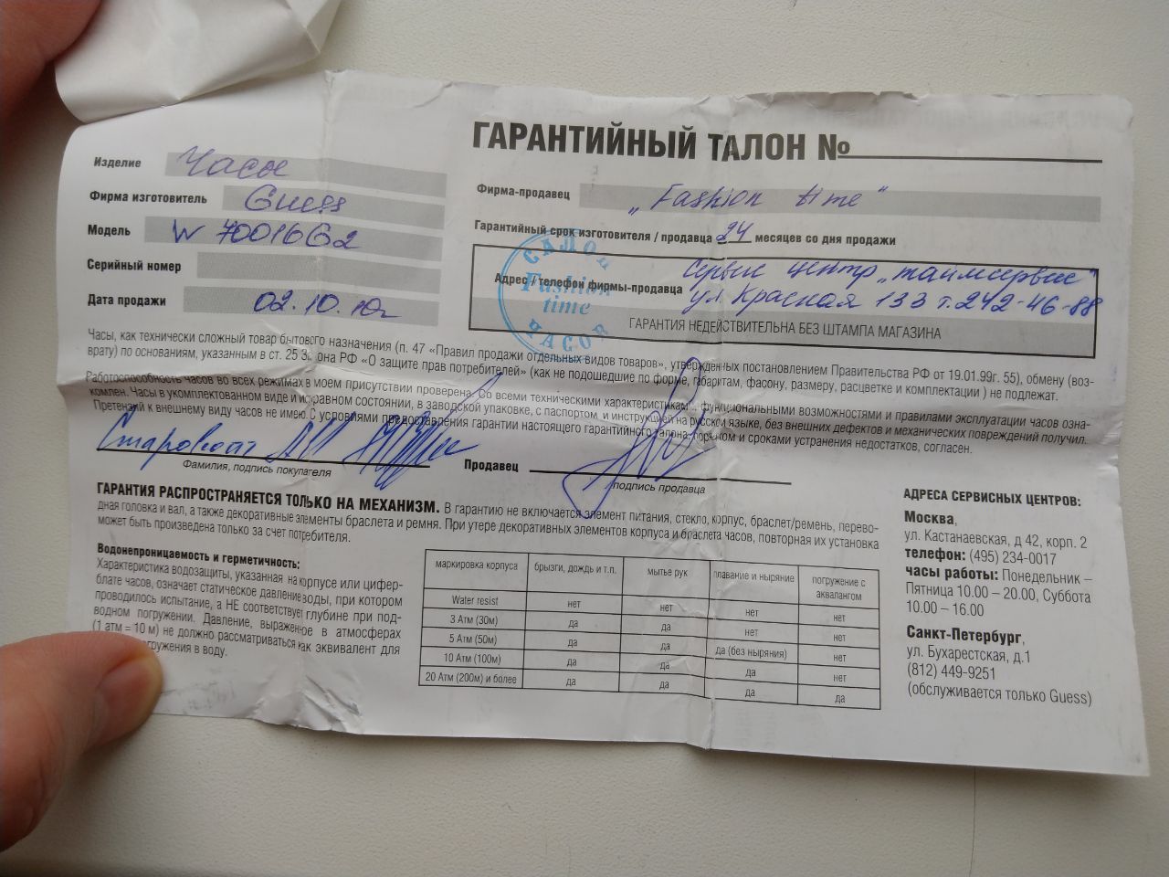 10.10.2010 купил псевдочасы GUESS(чек и фото во вложении, кассовый чек выцвел, кажется цена была 5 с небольшим тыс.руб), которые хоть и не ломались, но надоели и поистрепались.
