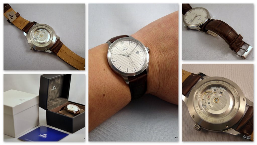 На фото, кстати, ремешок от Хирш. Интересная серия ремней "искуственно состаренных"! Могу оставить его (+1000 рублей). Повторюсь, что фирменный ремень - новый. Идет в комплекте с часами (на коллаже в первом сообщении темы).