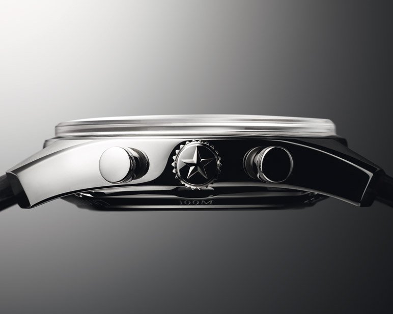 Круглый корпус из нержавеющей стали, даметром 42 мм, водонепроницаемый до 100 метров. Сапфировое стекло установлено на передней стороне корпуса (с двусторонним антибликовым покрытием) и на его задней крышке. Серебристый циферблат с накладными гранеными родированными часовыми индексами, часовой и минутной стрелками, покрытыми люминесцентным составом Superluminova.