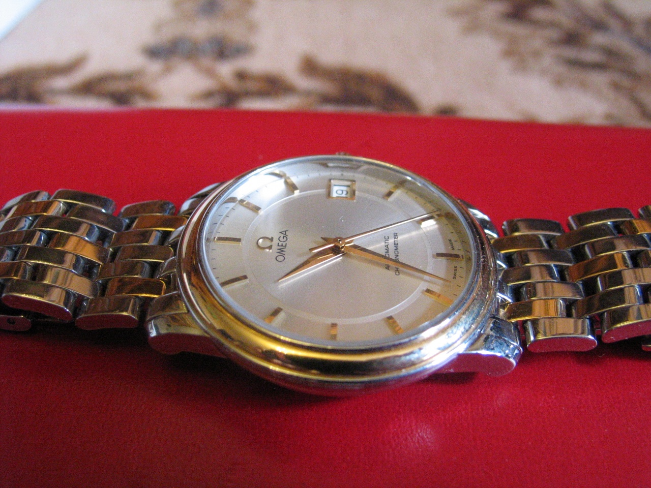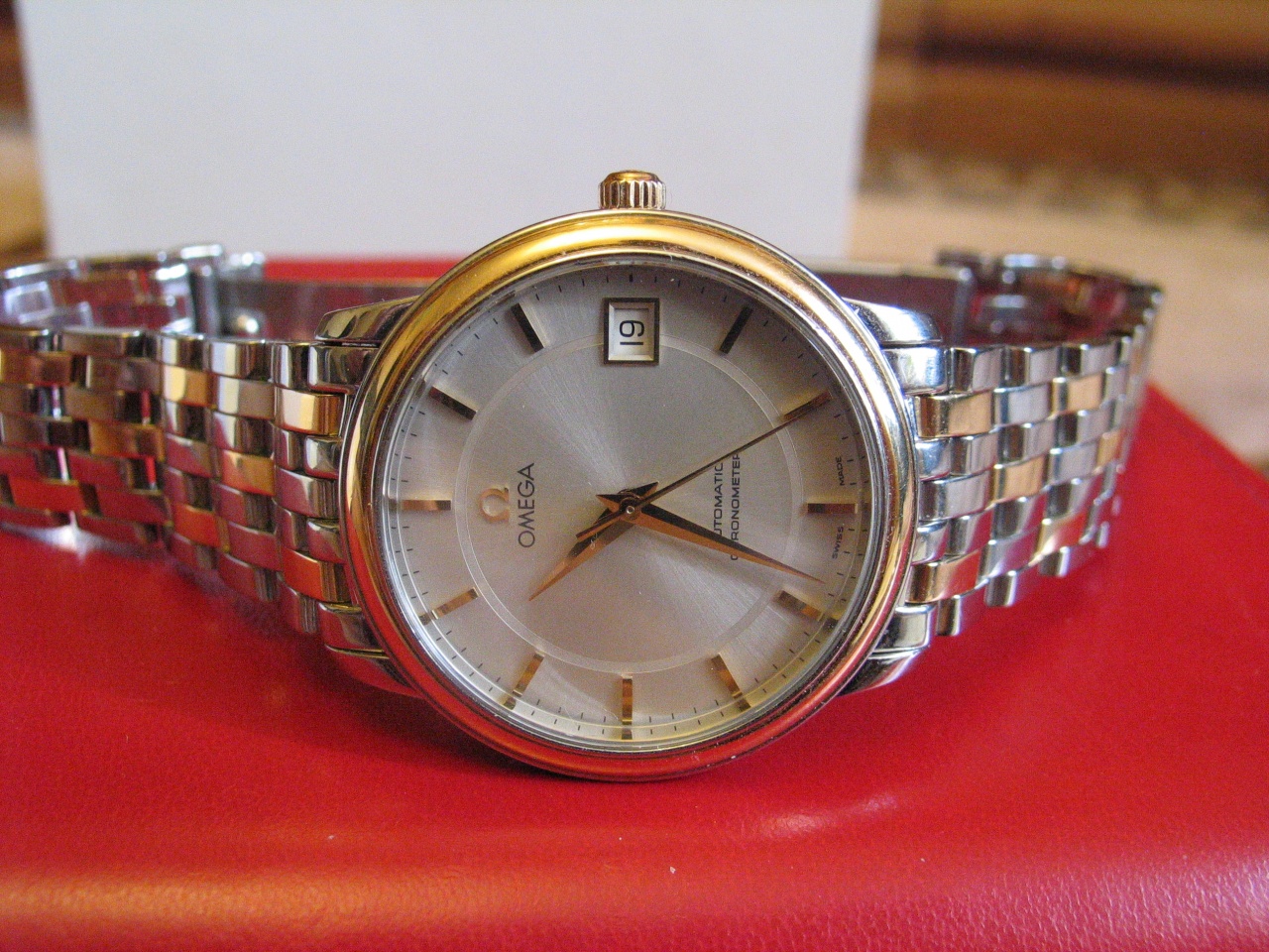 Мужские автоматические часы с индикацией даты. Официальный хронометр. Калибр Omega 1120, 23 камня, противоударная система. Диаметр корпуса 34.7мм. Полированный корпус из нержавеющей стали и 18-каратного желтого золота (750 проба). К корпусу крепится браслет из нержавеющей стали и 18-каратного желтого золота (750 проба). Циферблат цвета Silver .Центральная секундная стрелка. Сапфировое стекло. Водостойкость 30 метров. Серийный номер на задней крышке корпуса часов. Запас хода 44 часа.