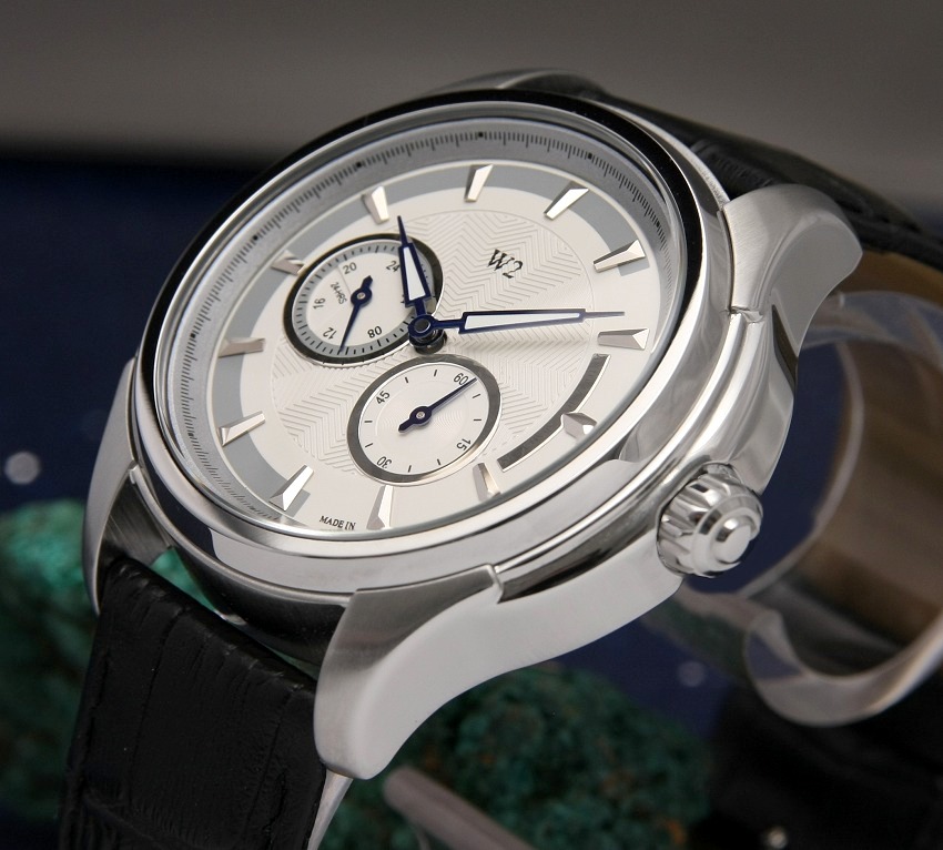 Часы от малоизвестного (даже Гугль мало что выдает по запросу) бренда. "Немец" с японским "сердцем". Не Китай и не фейк. Очень добротные часы. Поверьте на слово. Брал у немецкого продавца на е-бее. Мийотка декорирована и ничего кроме маховика в ней мийоту не выдает непосвященному. Часы абсолютно новые, в пленках. Взял парочку на пробу на е-бее (вторые чуть б.у. продаю в отдельной теме в соответствующем разделе). Коробка, откровенно говоря, "так себе". Поэтому, если на подарок недорогой брать - только для своих... А вот сами часы очень качественно финишированы и отработаны: гильош, синие стрелки, секундная на отдельном цифере + циферблат отдельный (на 9 часов) для индикации времени в 24-хчасовом режиме (не GMT!). Откровенно здорово смотрятся на руке и намного "дороже". Прочие характеристики: