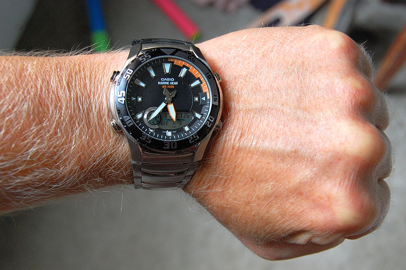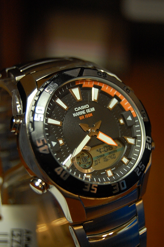 Циферблат и стрелки – все хорошо, большие маркеры на часах, большие стрелки, отличная читаемость. Люминофор обычного касиевского качества – звезд с неба не хватает, но часа полтора-два послесвечения обеспечивает.