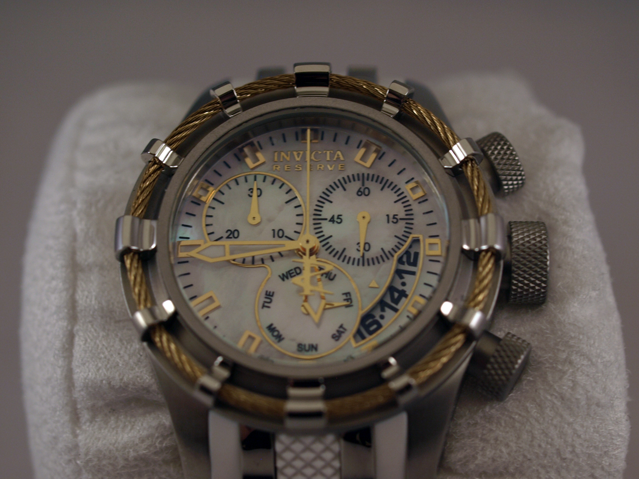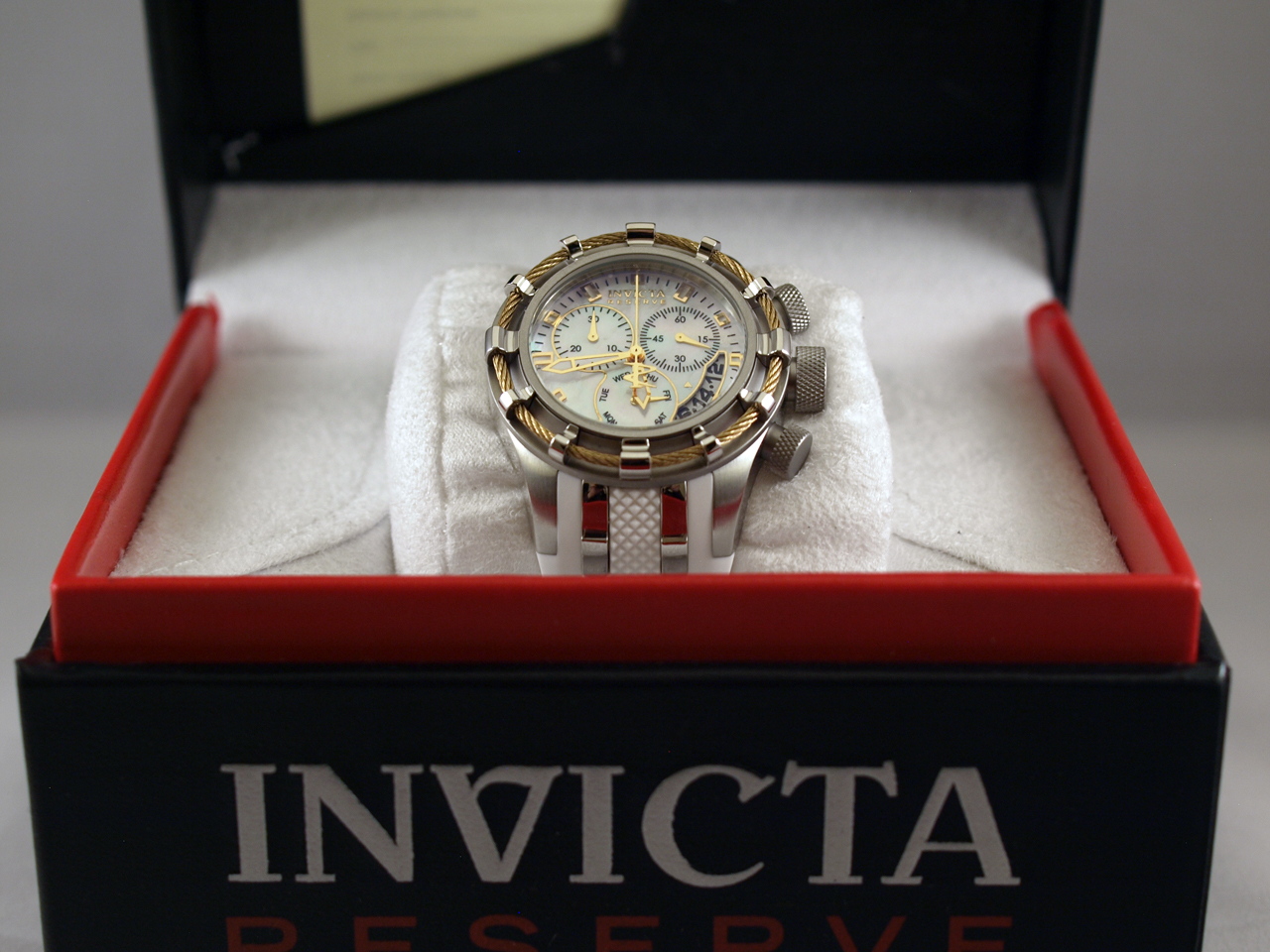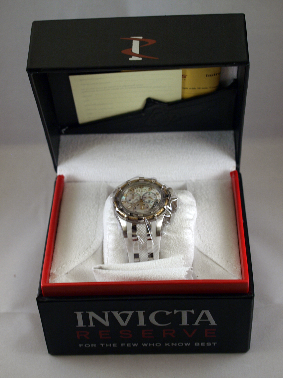 Стрелки и маркеры часов люминисцентные, секундная стрелка хронографа с логотипом серии Invicta Reserve;