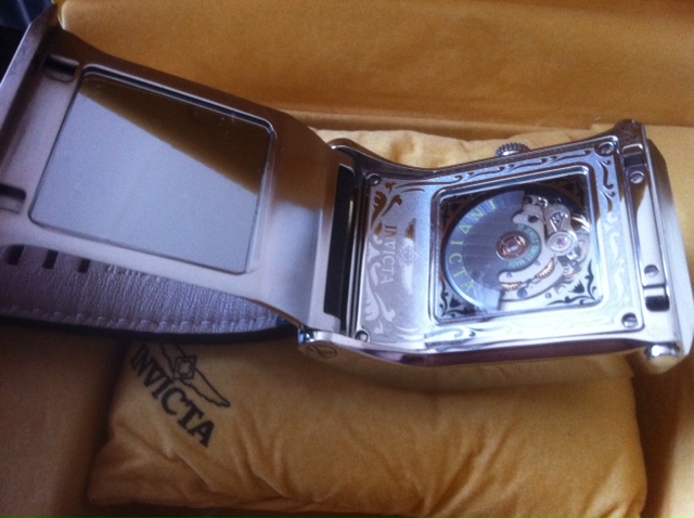 Продаю в Мск новые в коробке с документами мужские механические часы швейцарской фирмы Invicta Time Square Automatic Swiss ( model 2408) с черносиним перламутровым циферблатом на черном кожаном ремне с интересным ассиметричным дизайном корпуса и откидной задней крышкой на внутренней стороне которой можно нанести памятную надпись - смотрятся очень оригинально и стильно !!!